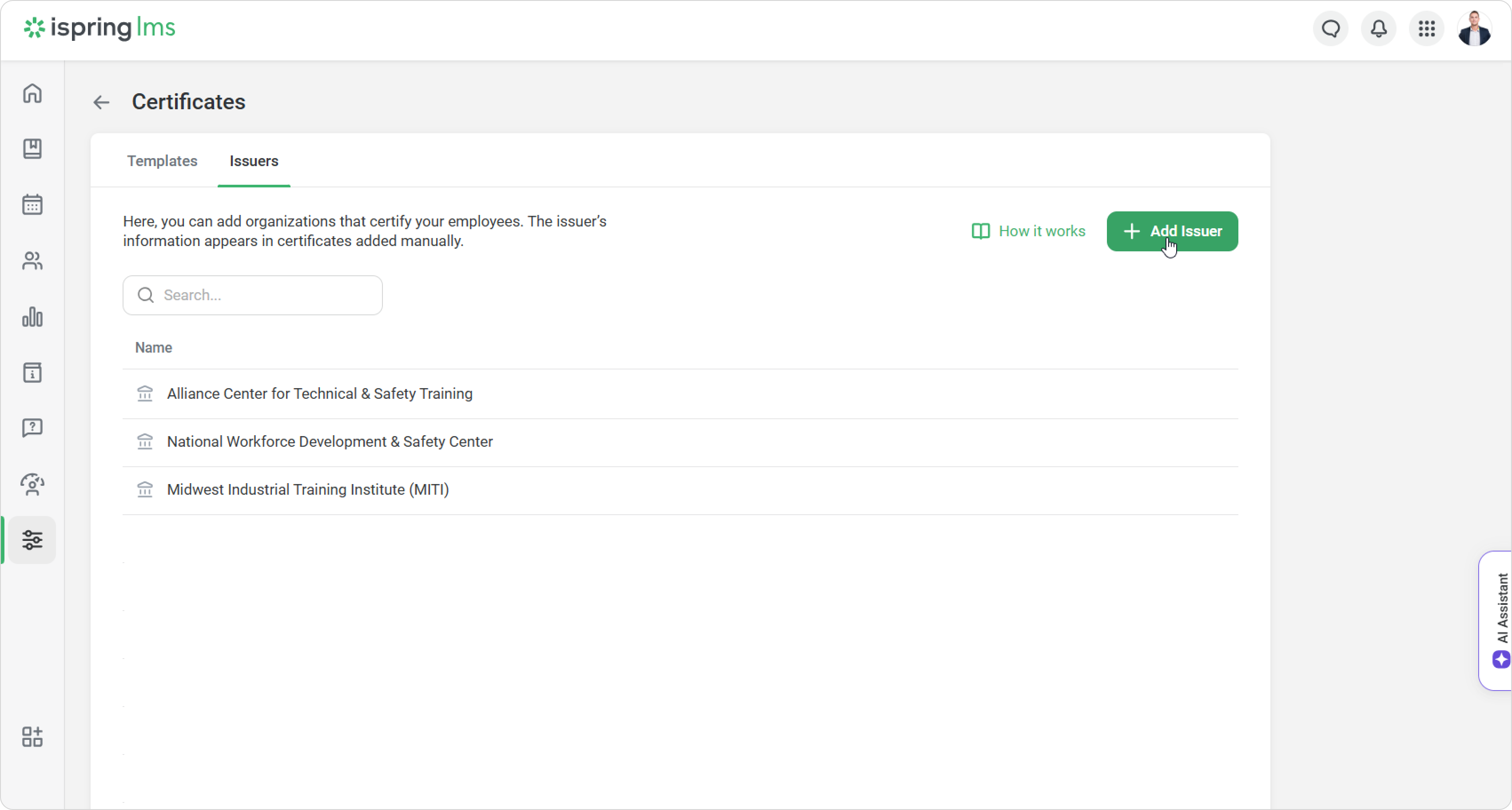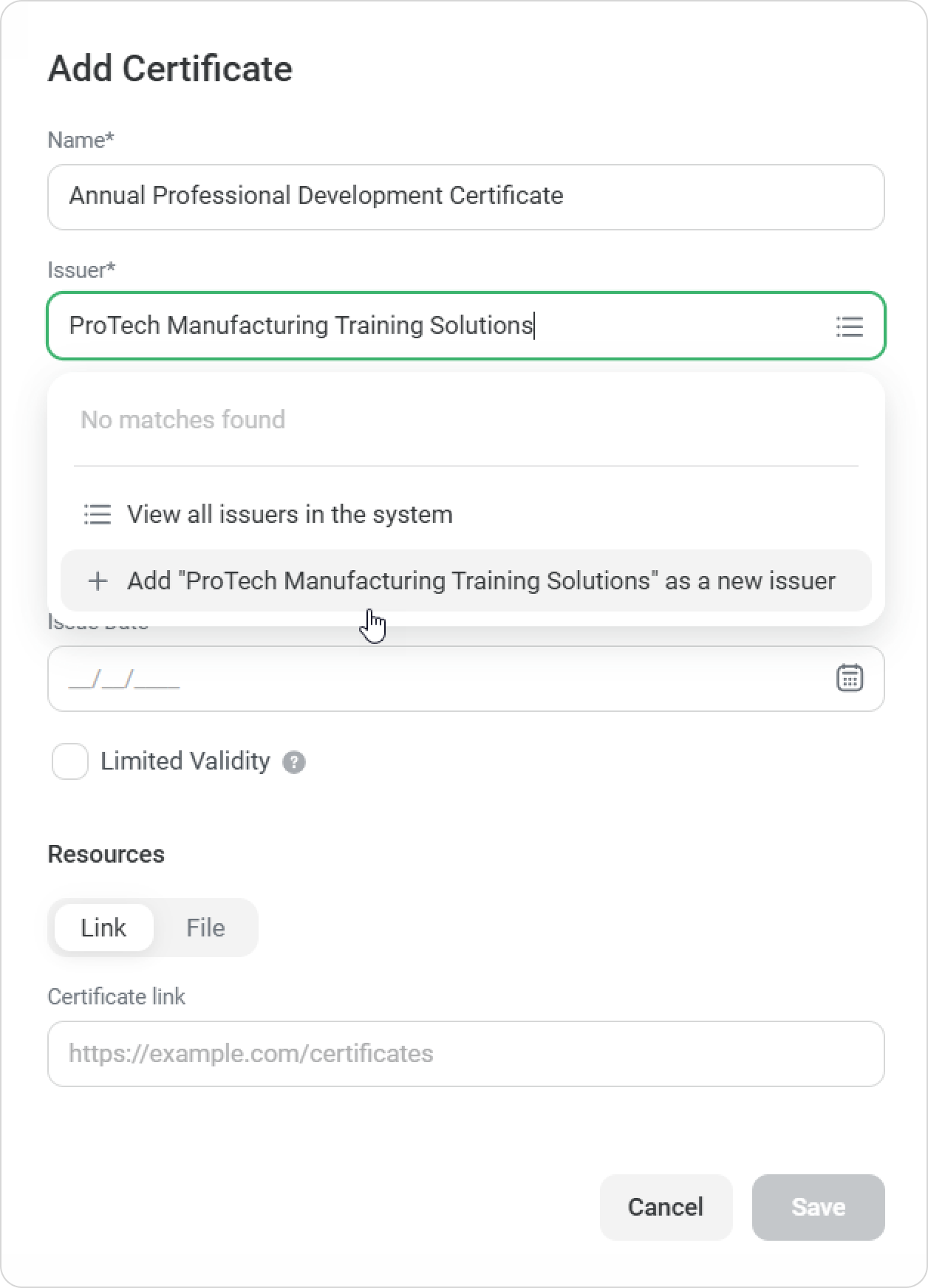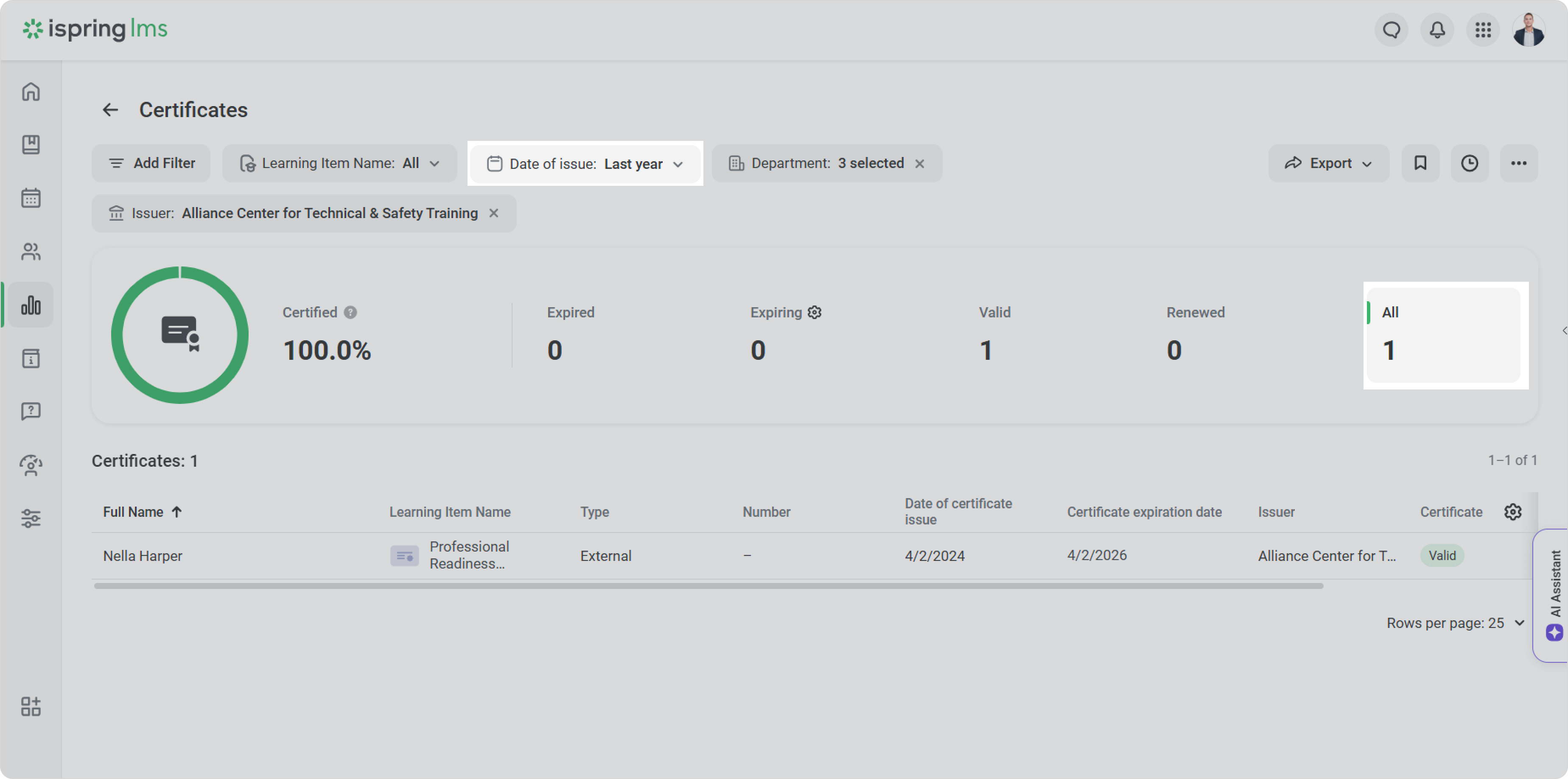 Use the Date of issue filter to quickly find all employees who received certificates from a specific Issuer.