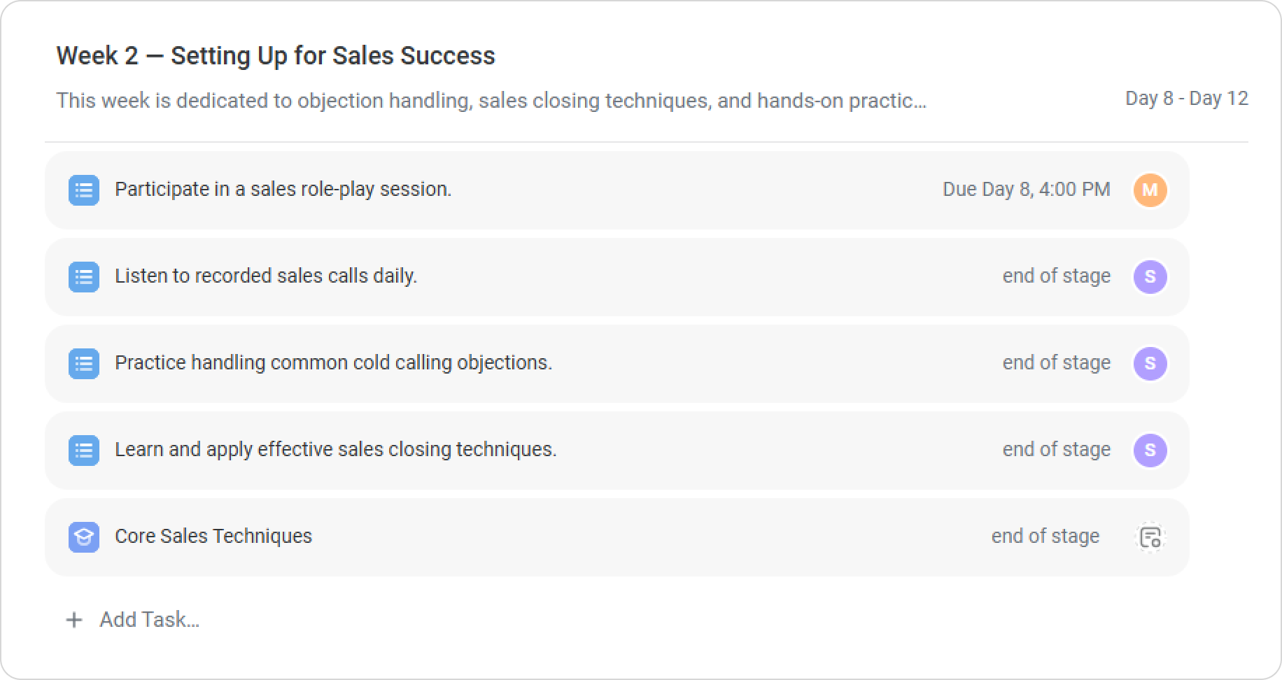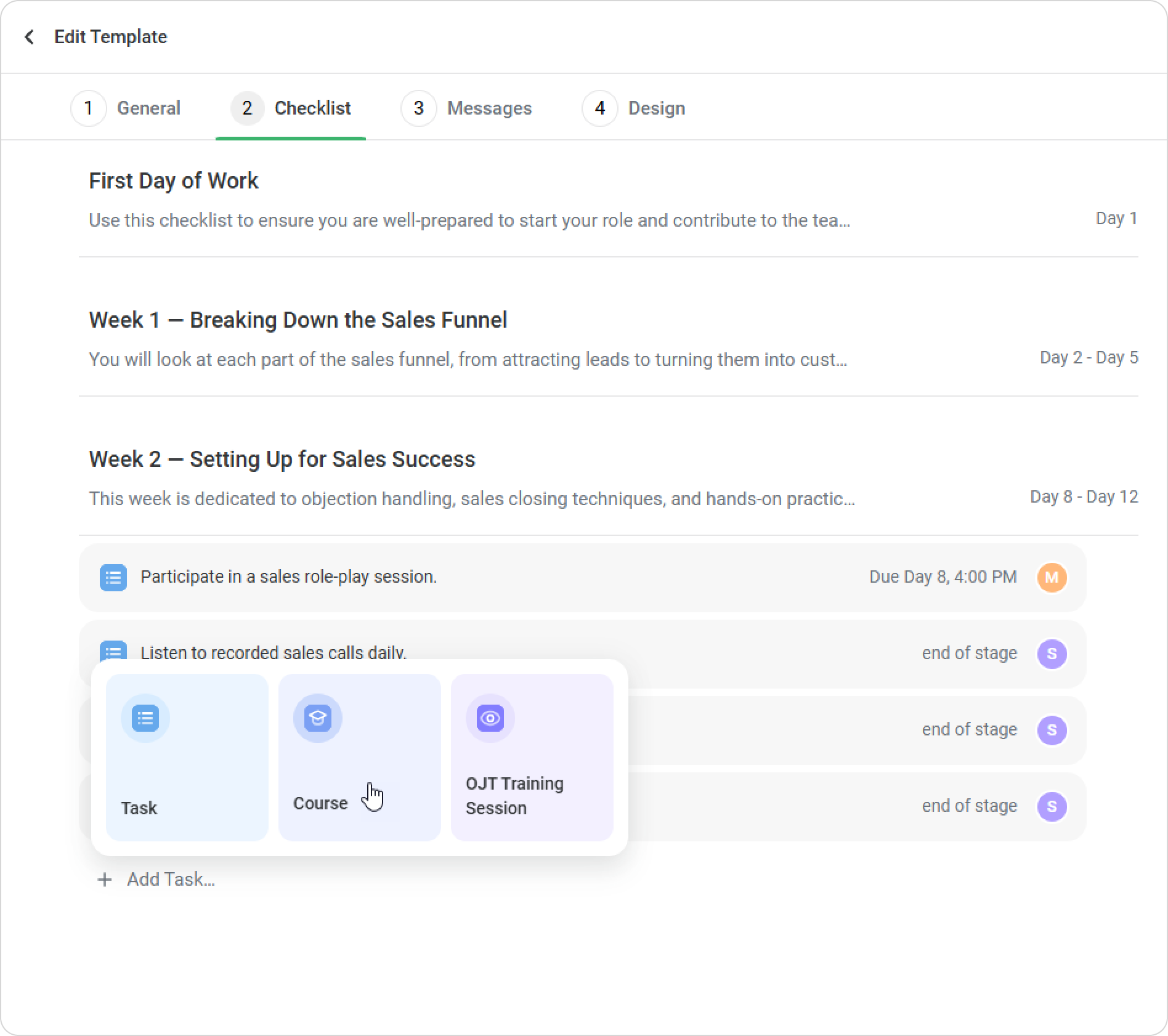 - In the Checklist tab, click on Add Task > Course.