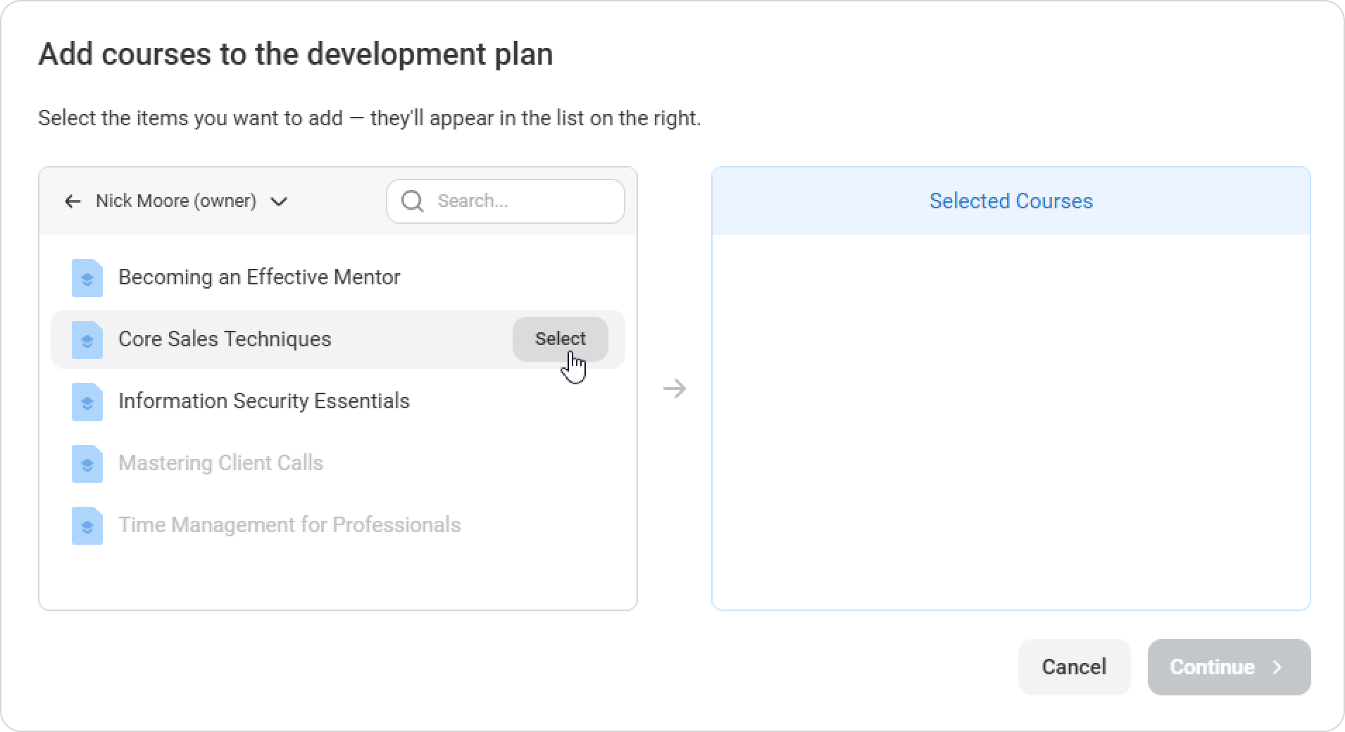 How to Add a Course to a Development Plan