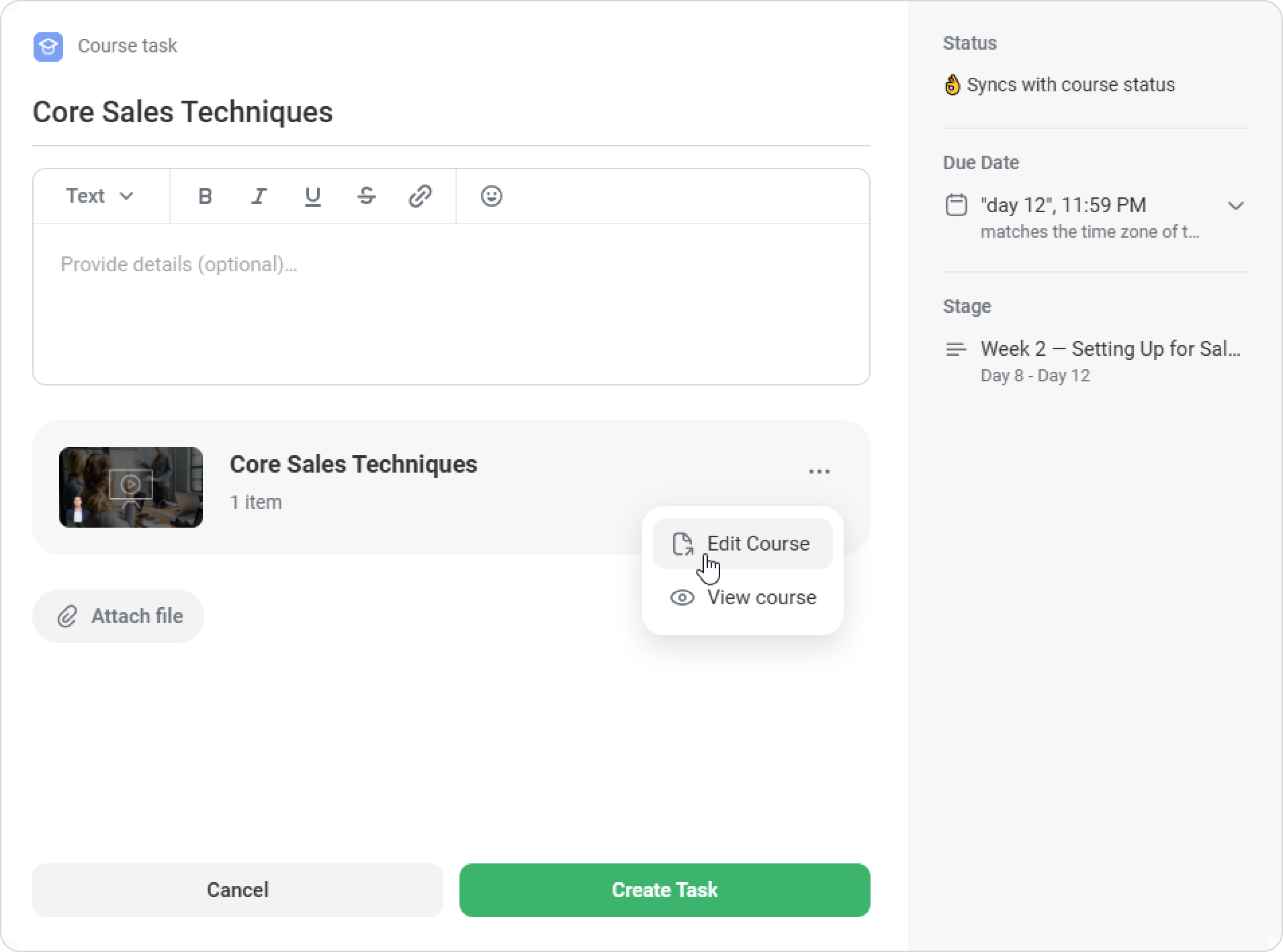 How to create a course task