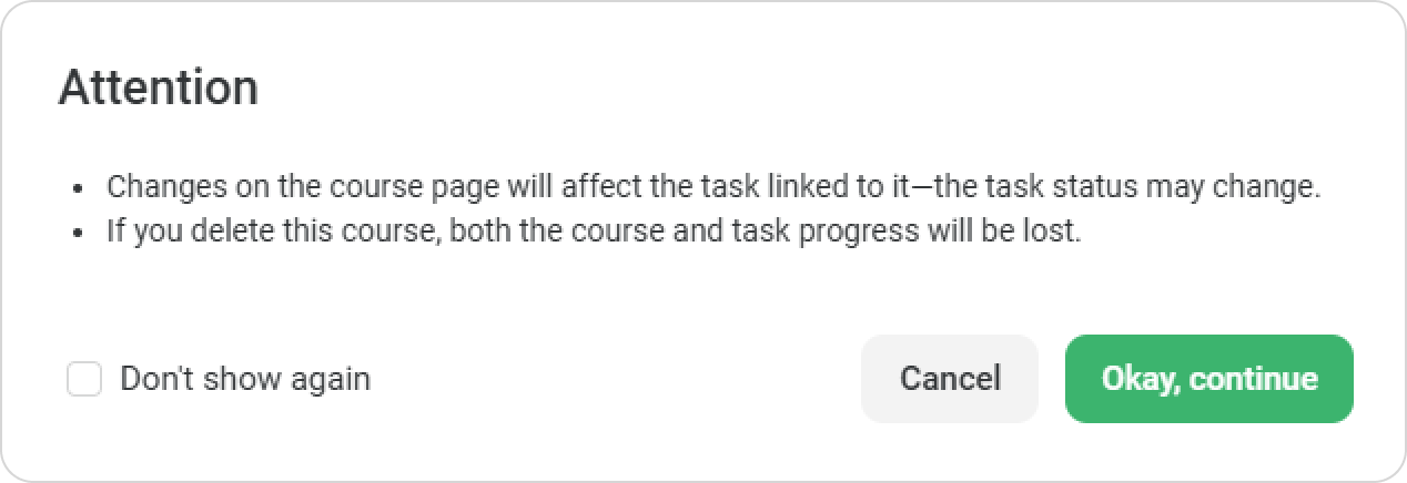 If you add new learning content, the employee’s progress on the task will be reduced.