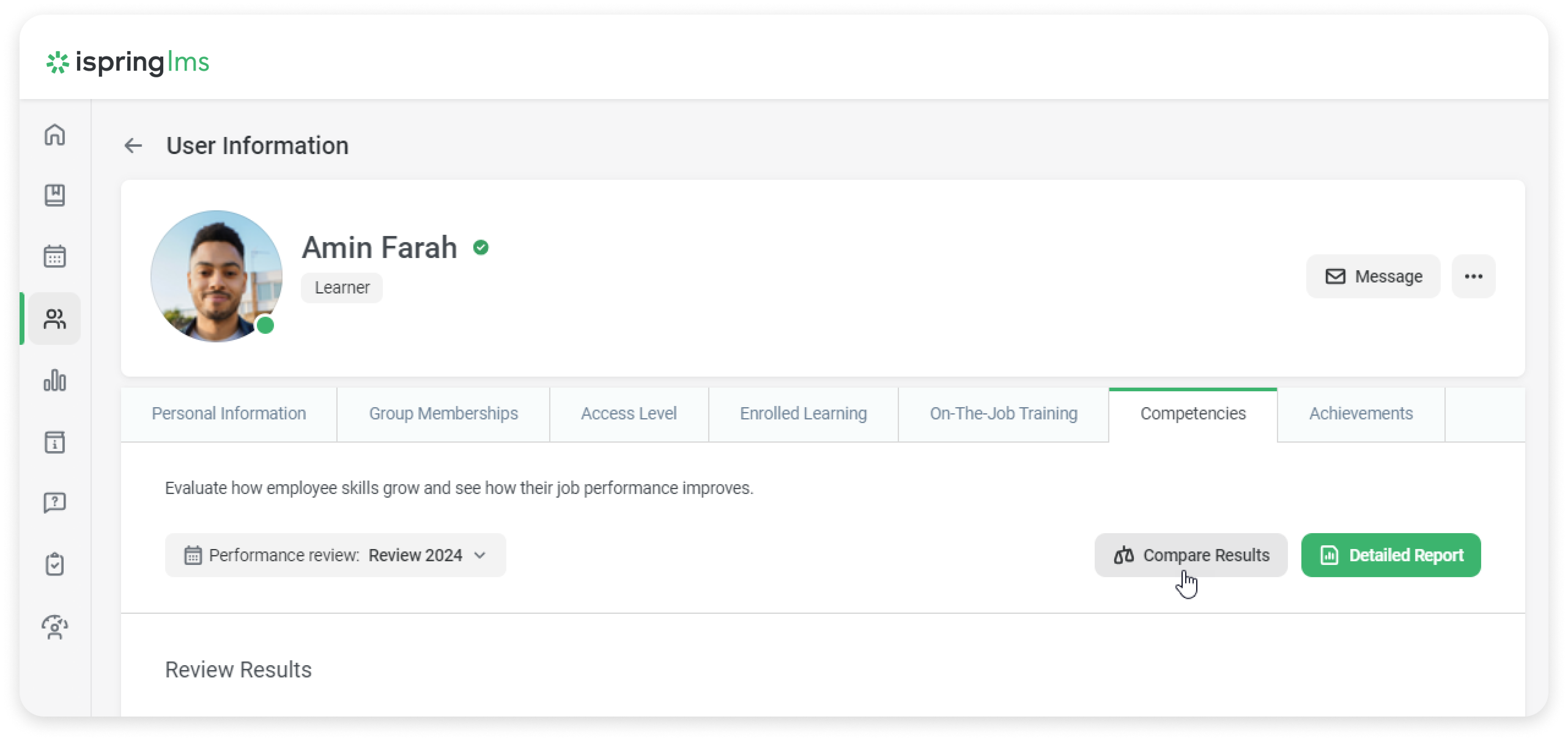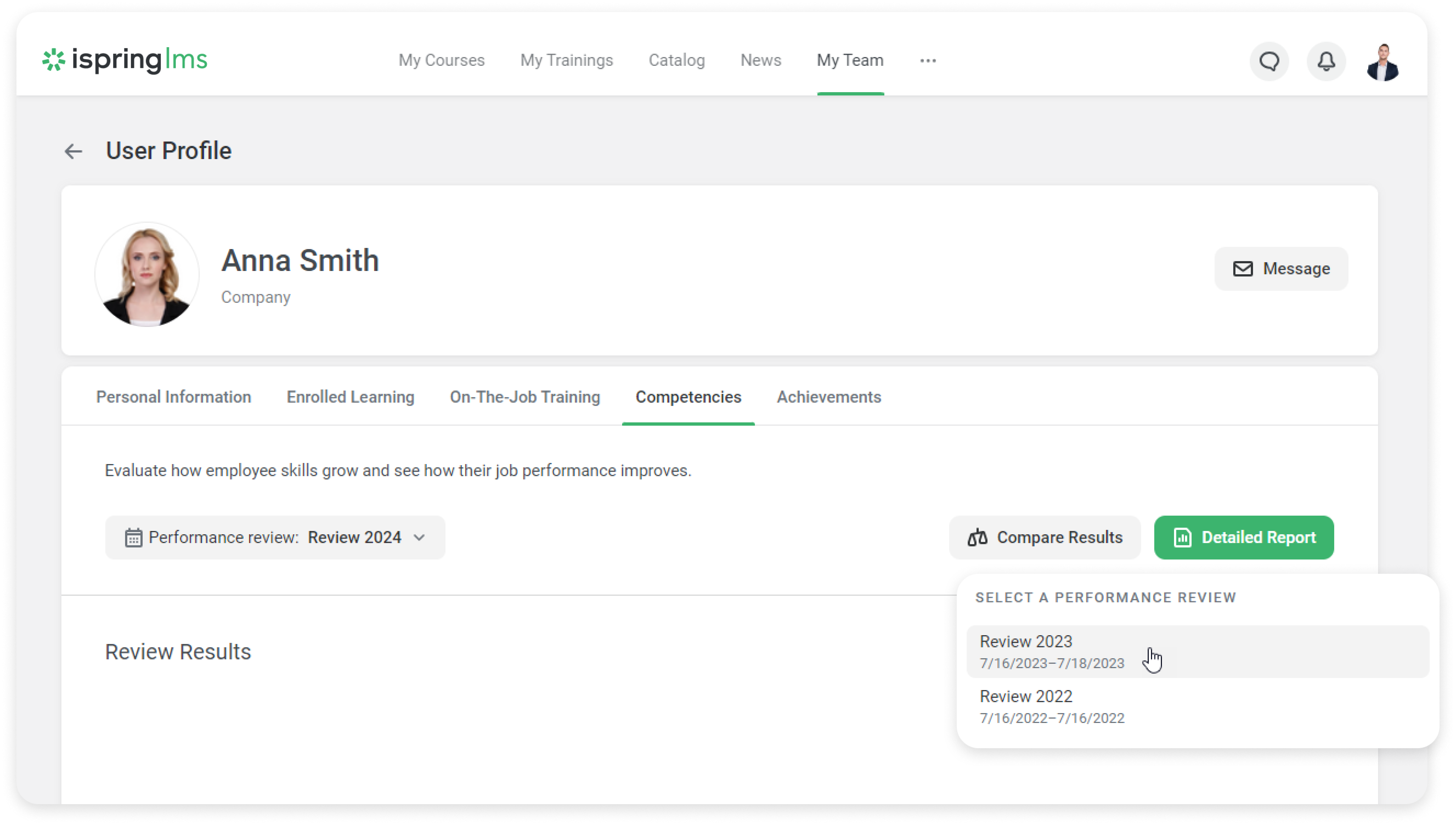 - Click on Compare Results and select the most recent performance review.