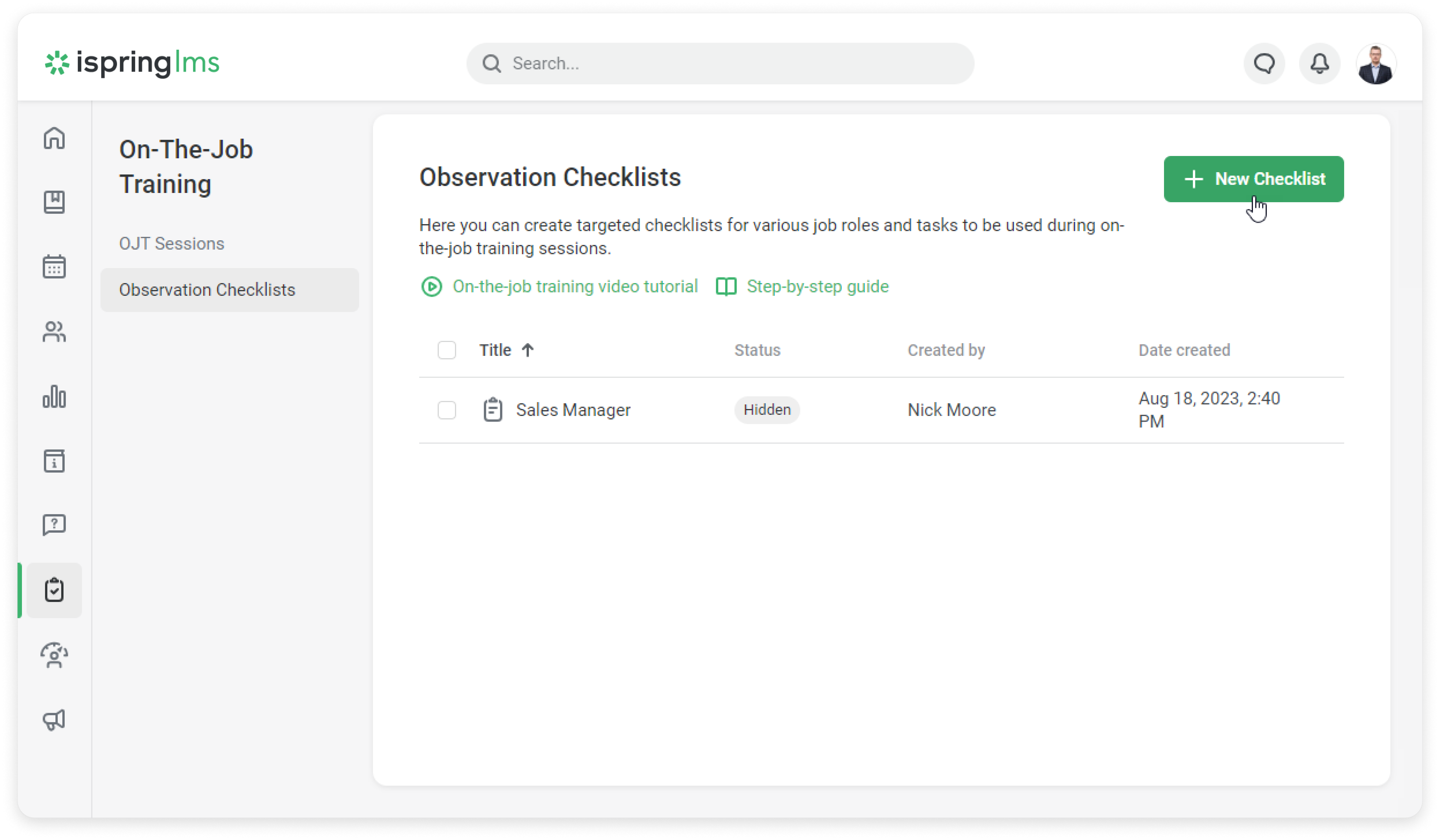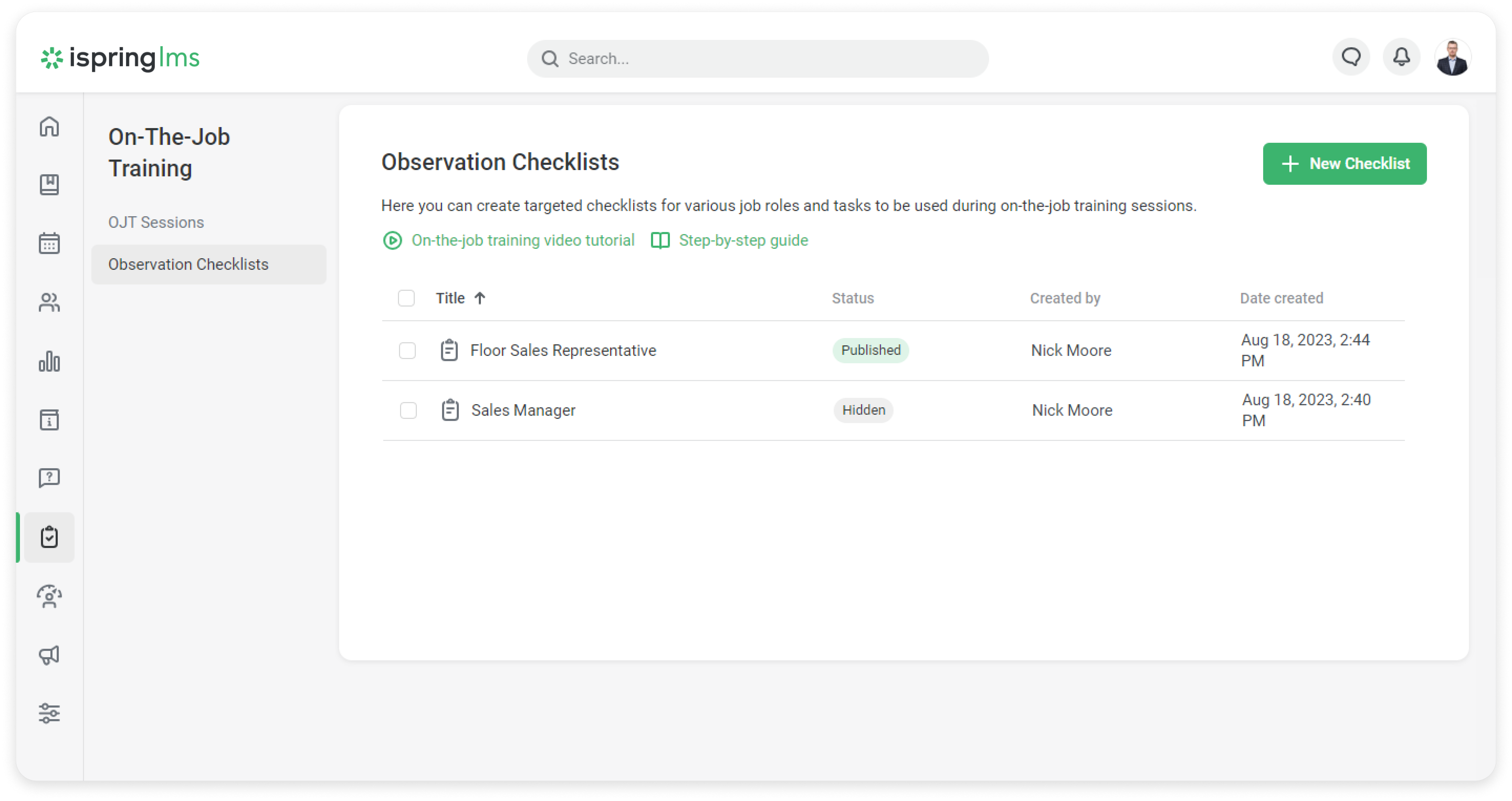 Perfect! The observation checklist is created, now you can create an OJT Session.