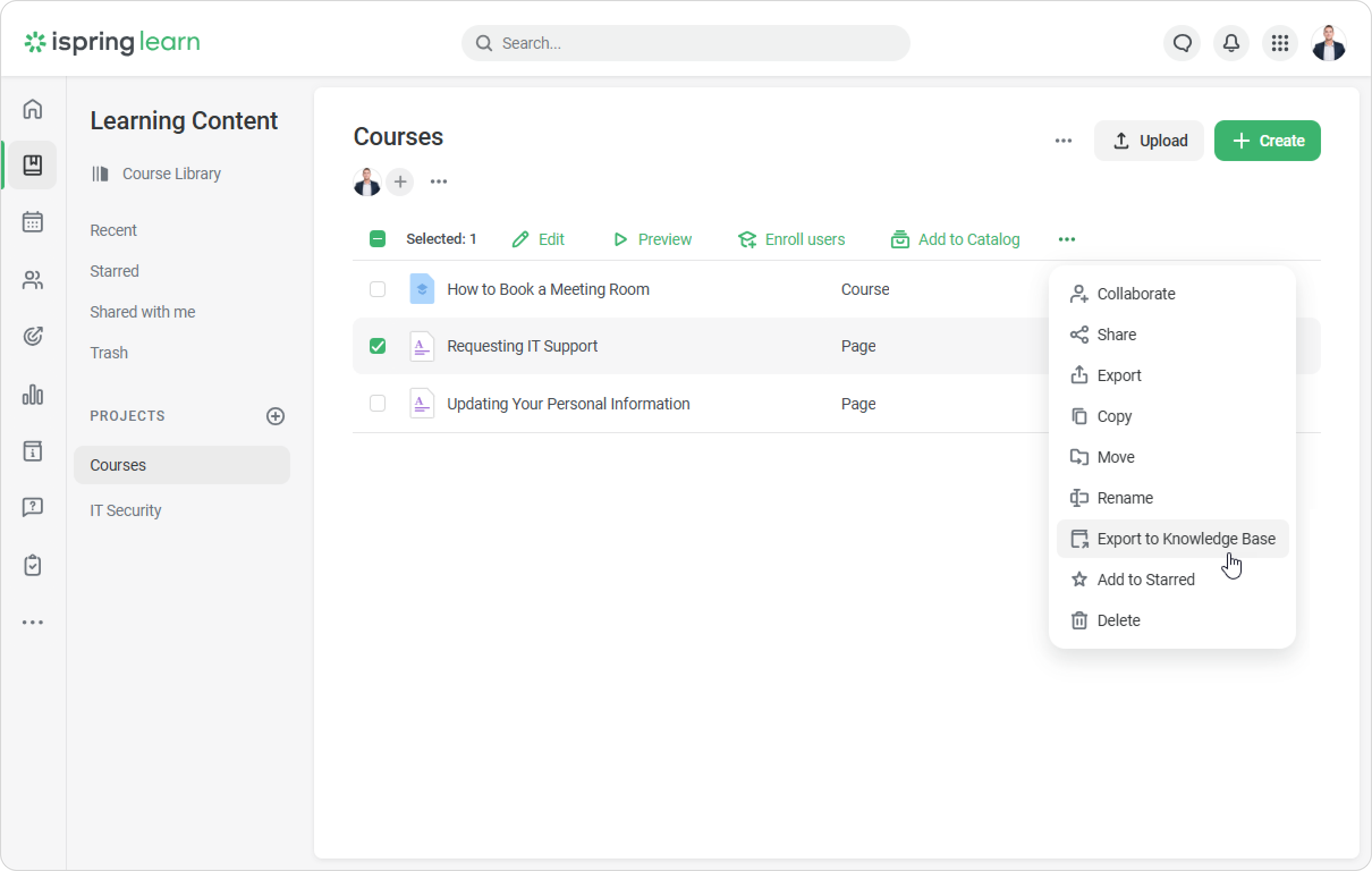 Click ••• >Export to Knowledge Base.