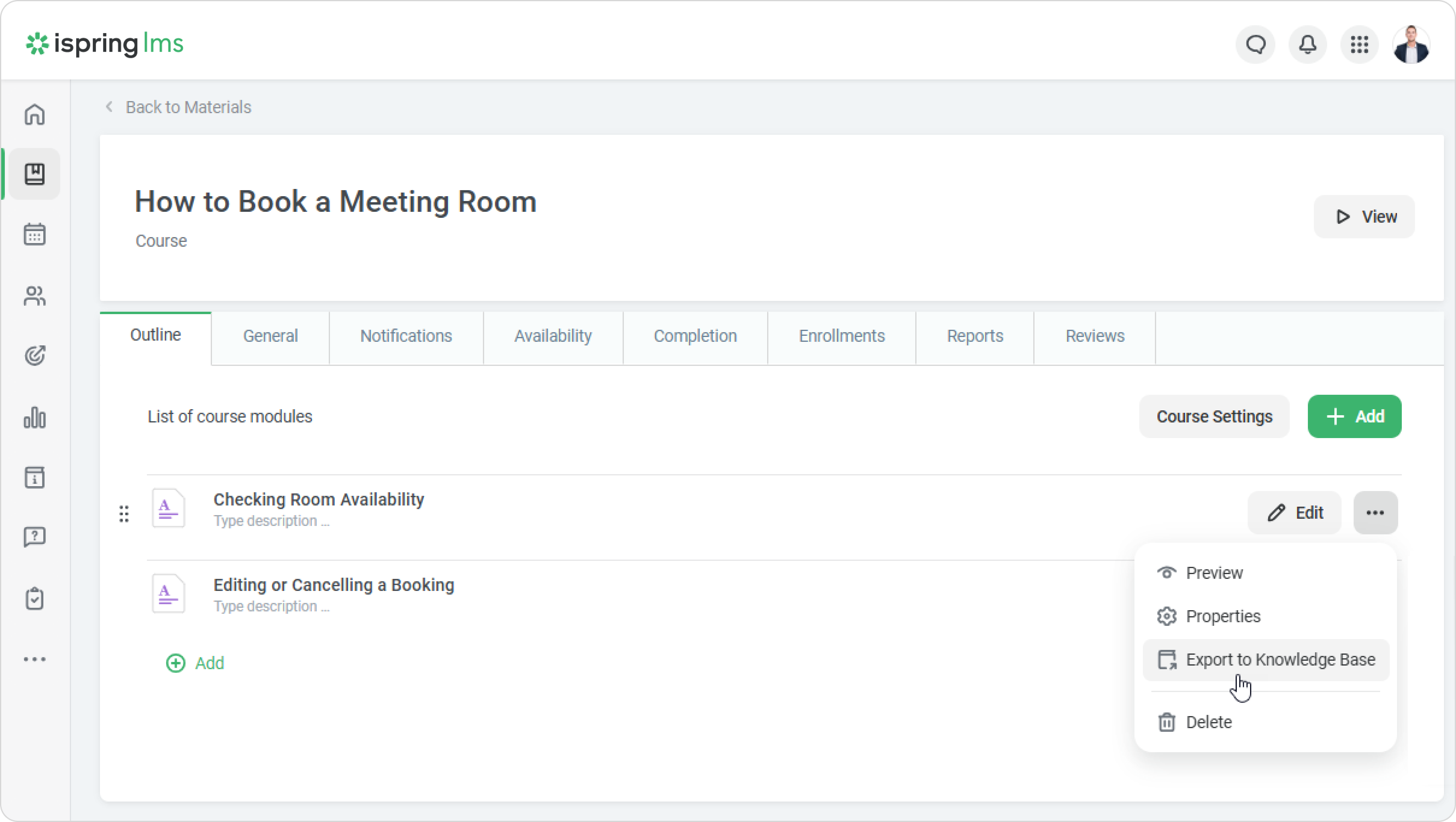 Go to Learning Content and open a course.