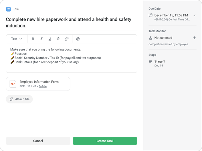 Enter the task name and add a description. You can include links to resources, detailed instructions, and attach files.