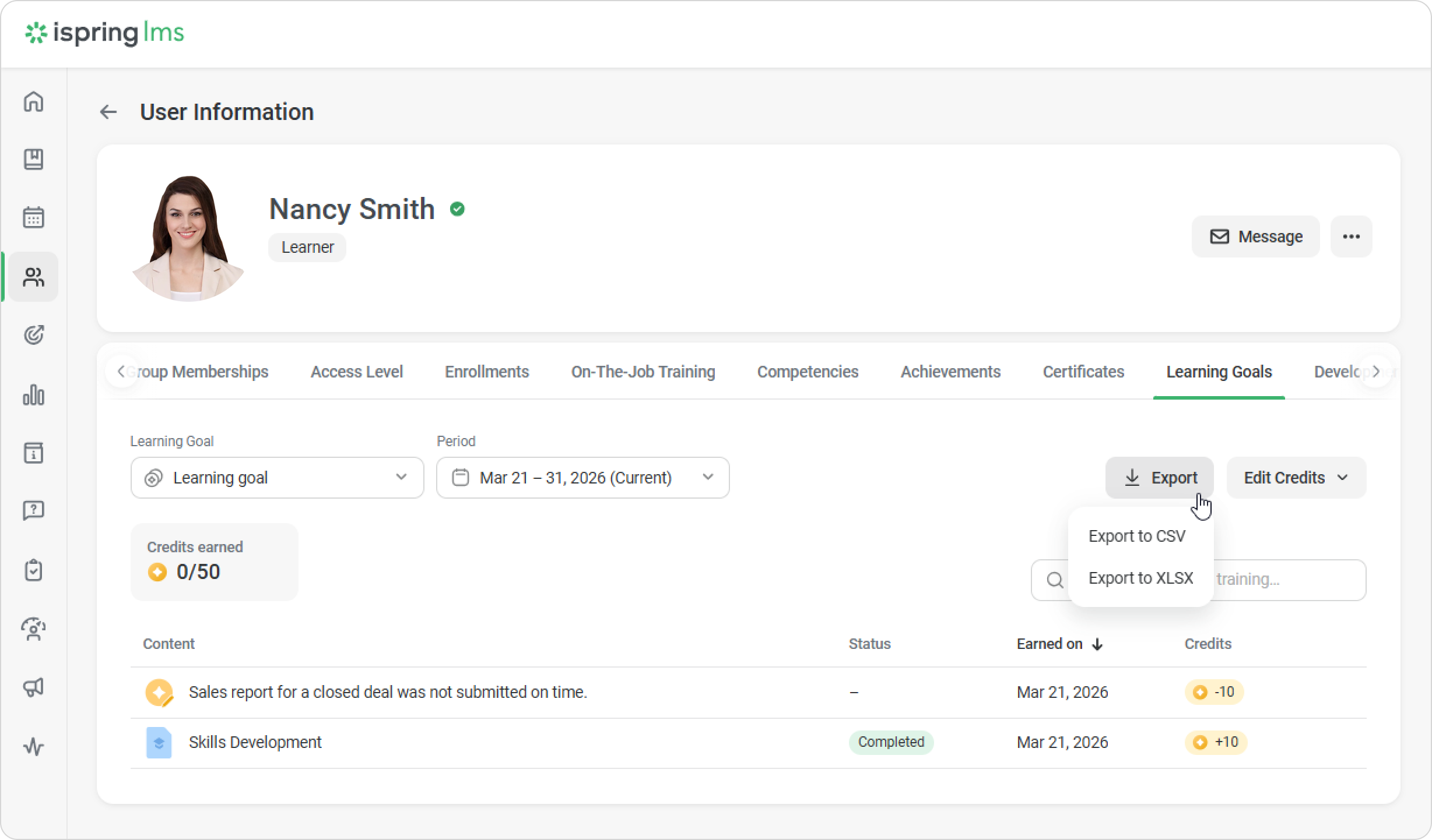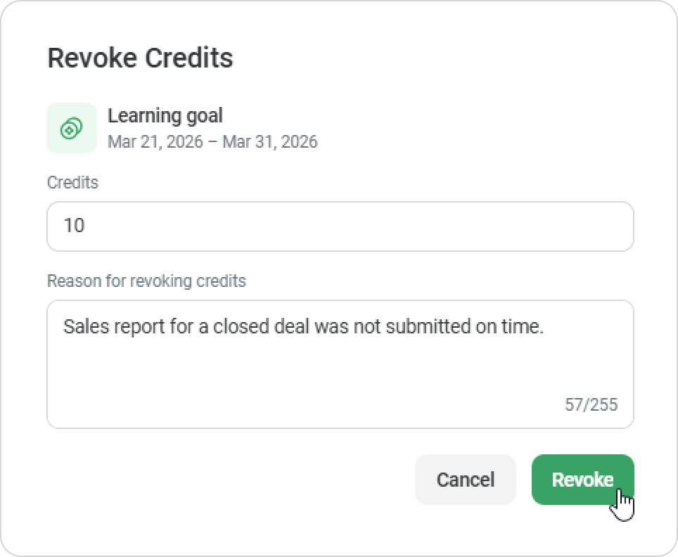 Imagine a situation: if a sales manager forgets to submit a report for a closed deal, it violates company rules and lowers their CPD credits. The administrator can then revoke the appropriate learning credits.