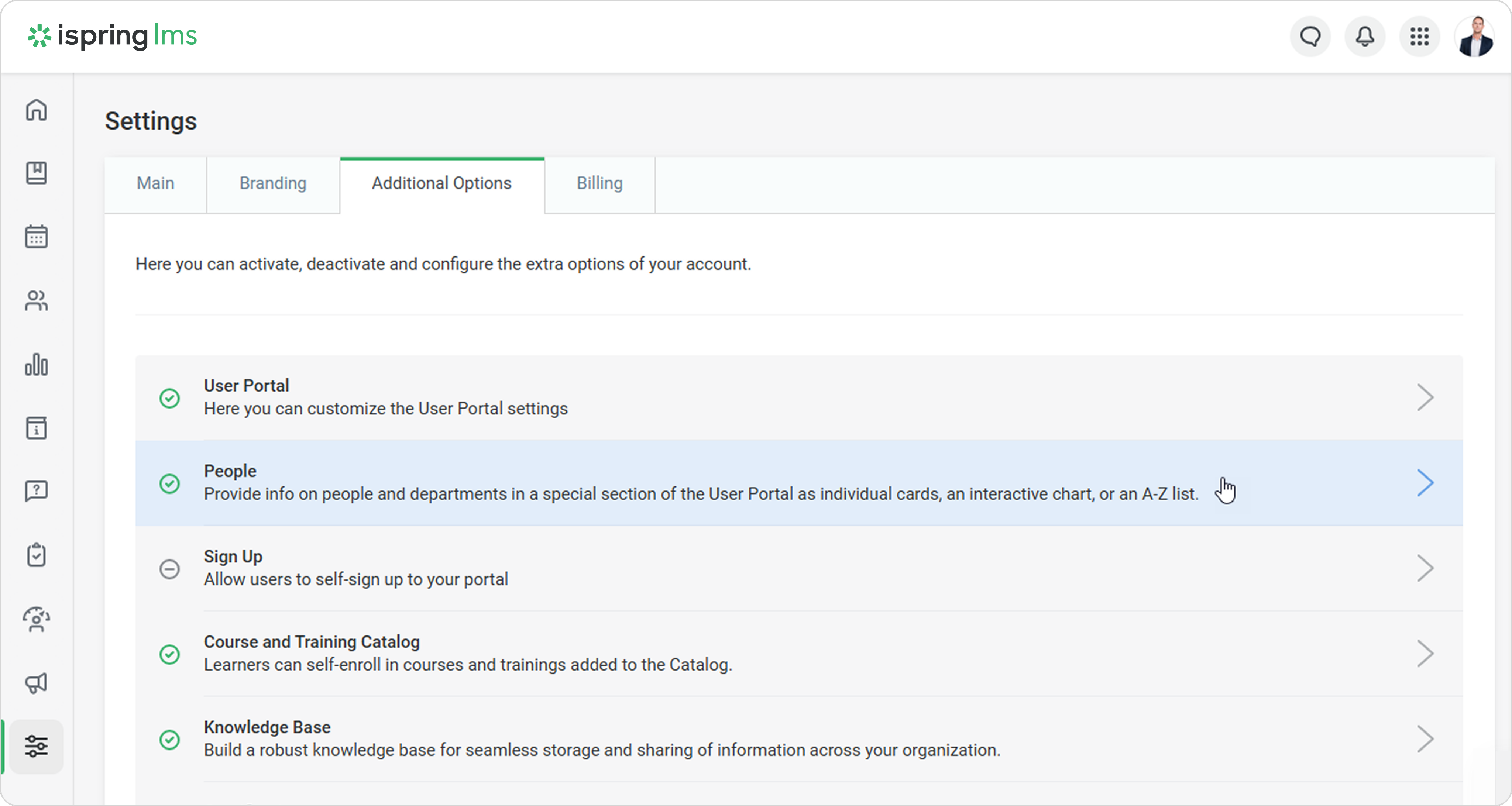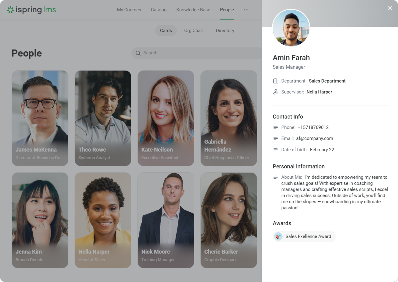 Decide what information employees will see on the user card. For example, you can choose to hide or show details, such as the department an employee belongs to and who their supervisor is.