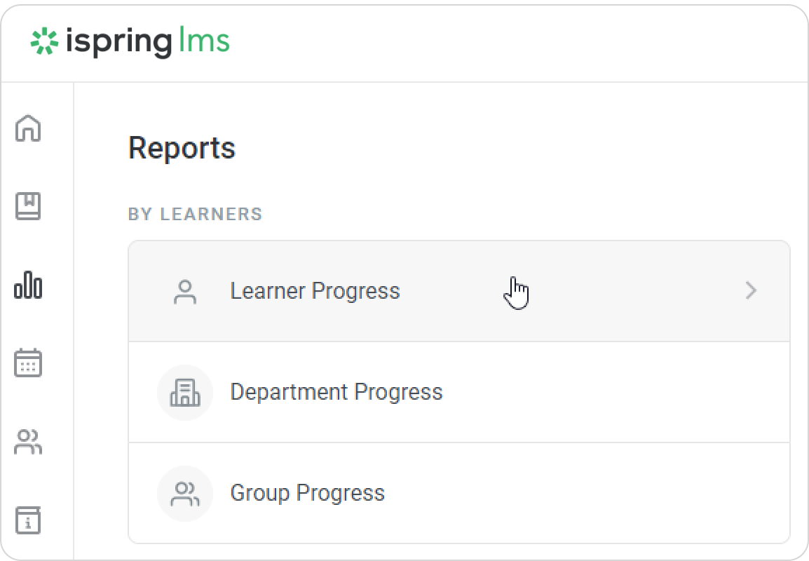 Open the Reports section, click Learner Progress, and the report will be opened on the same page.