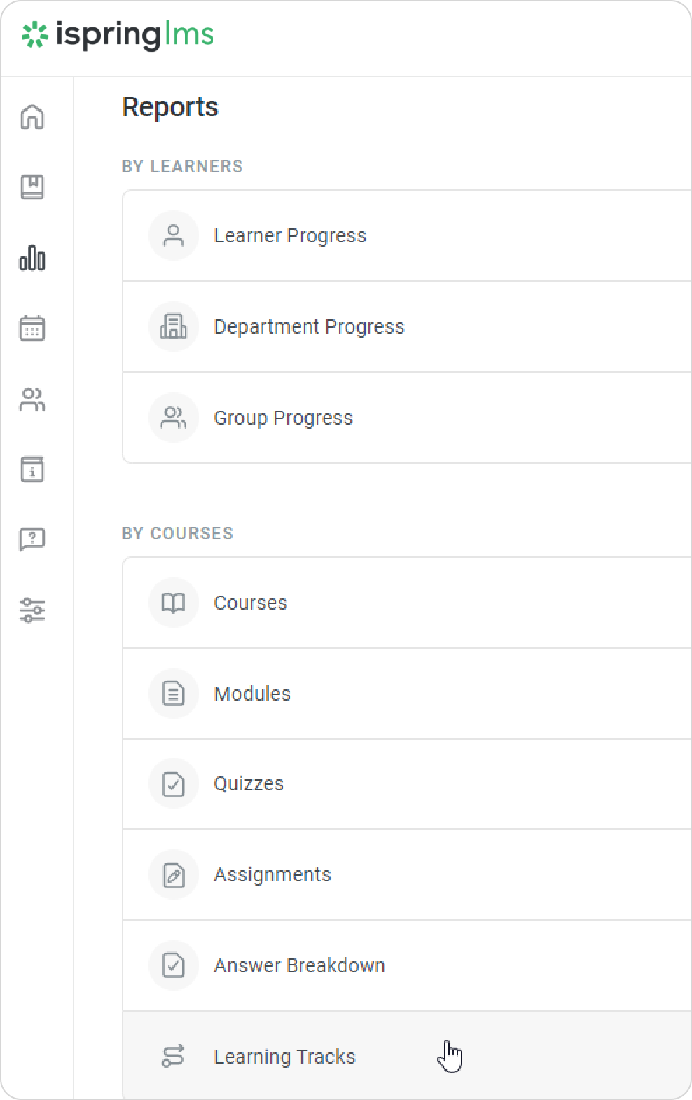 - Open the Reports section, click Learning Tracks, and the report will be opened on the same page.