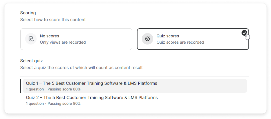 You can choose to leave the page unscored, but if it has quizzes, you can select a quiz, and its scores will be considered as the result of that content.