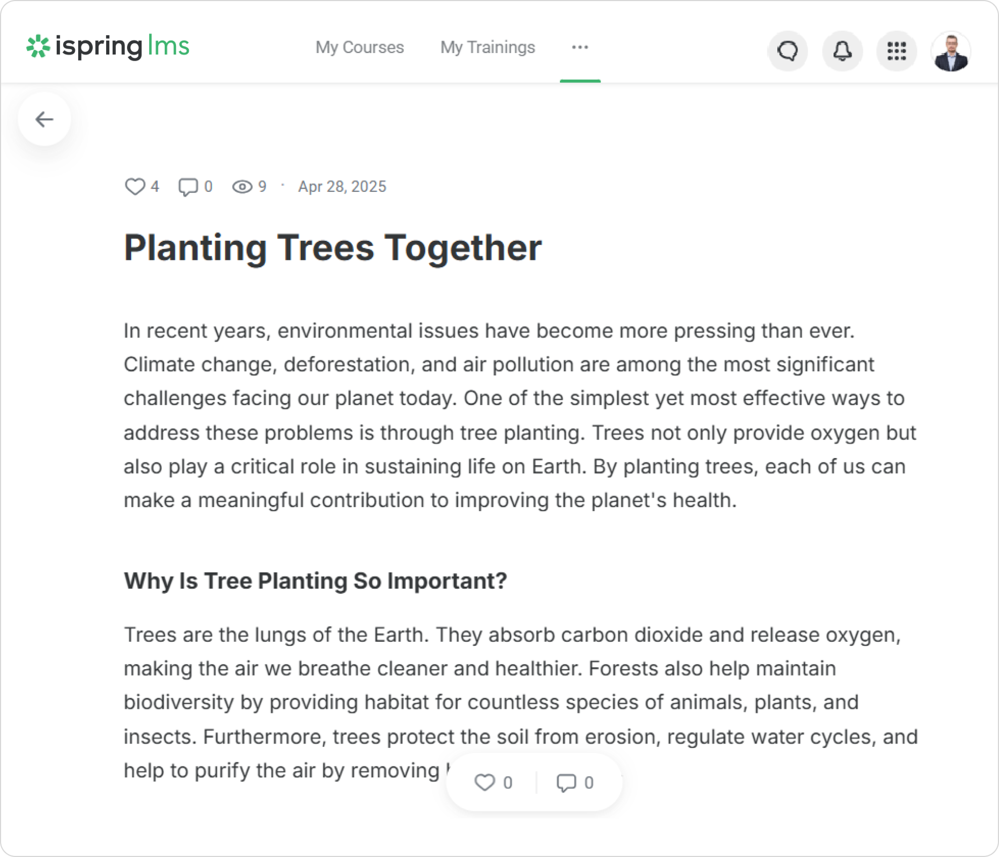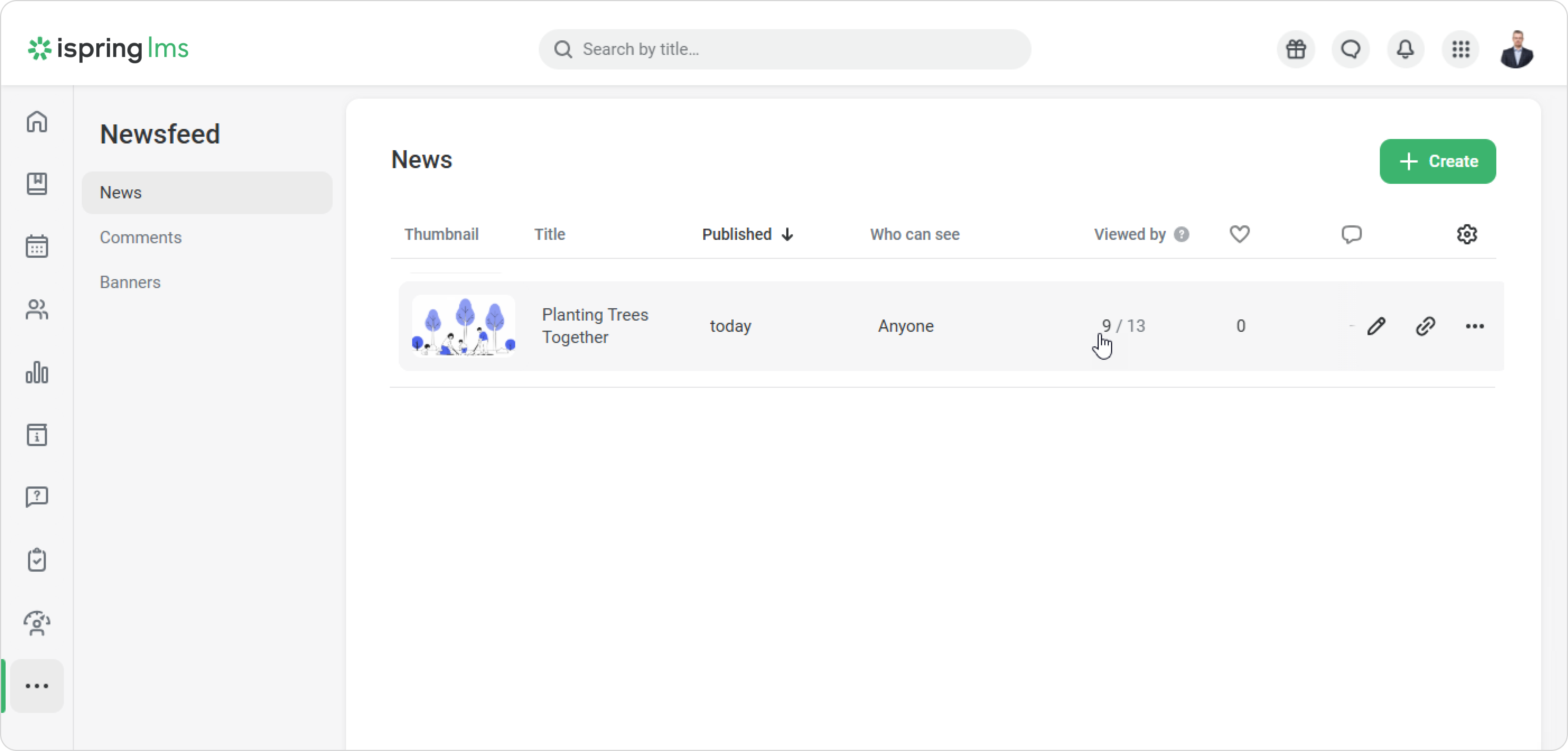 You can track how many employees have opened and read the news. This will help you identify the most engaging topics and, based on the views, make the newsfeed more relevant and useful for your audience.