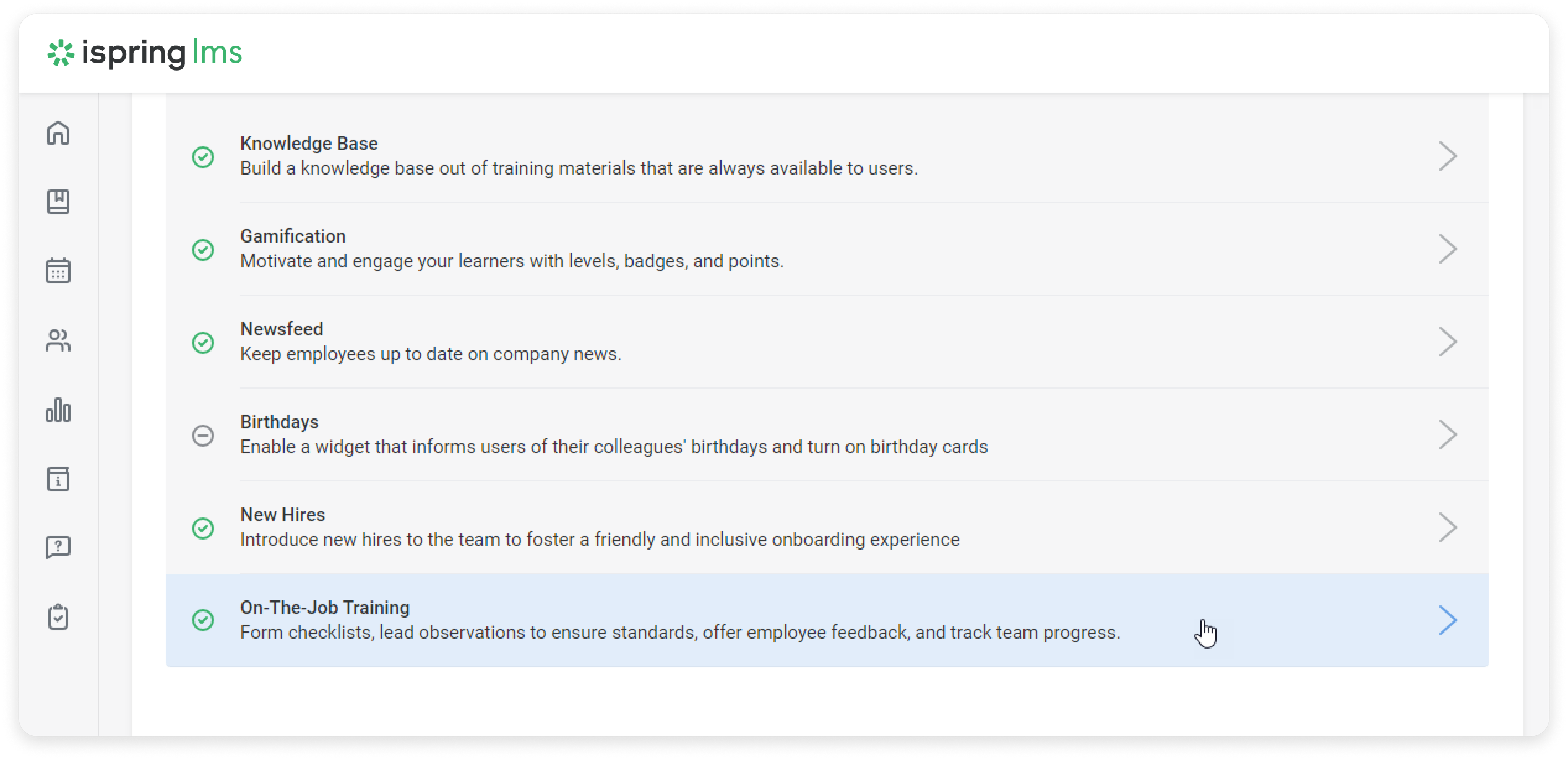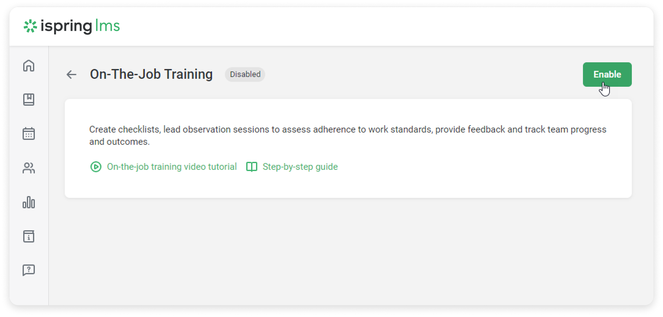 Done! You’ll see the On-The-Job Training Module on the sidebar. Here you can create observation checklists and lead training sessions.