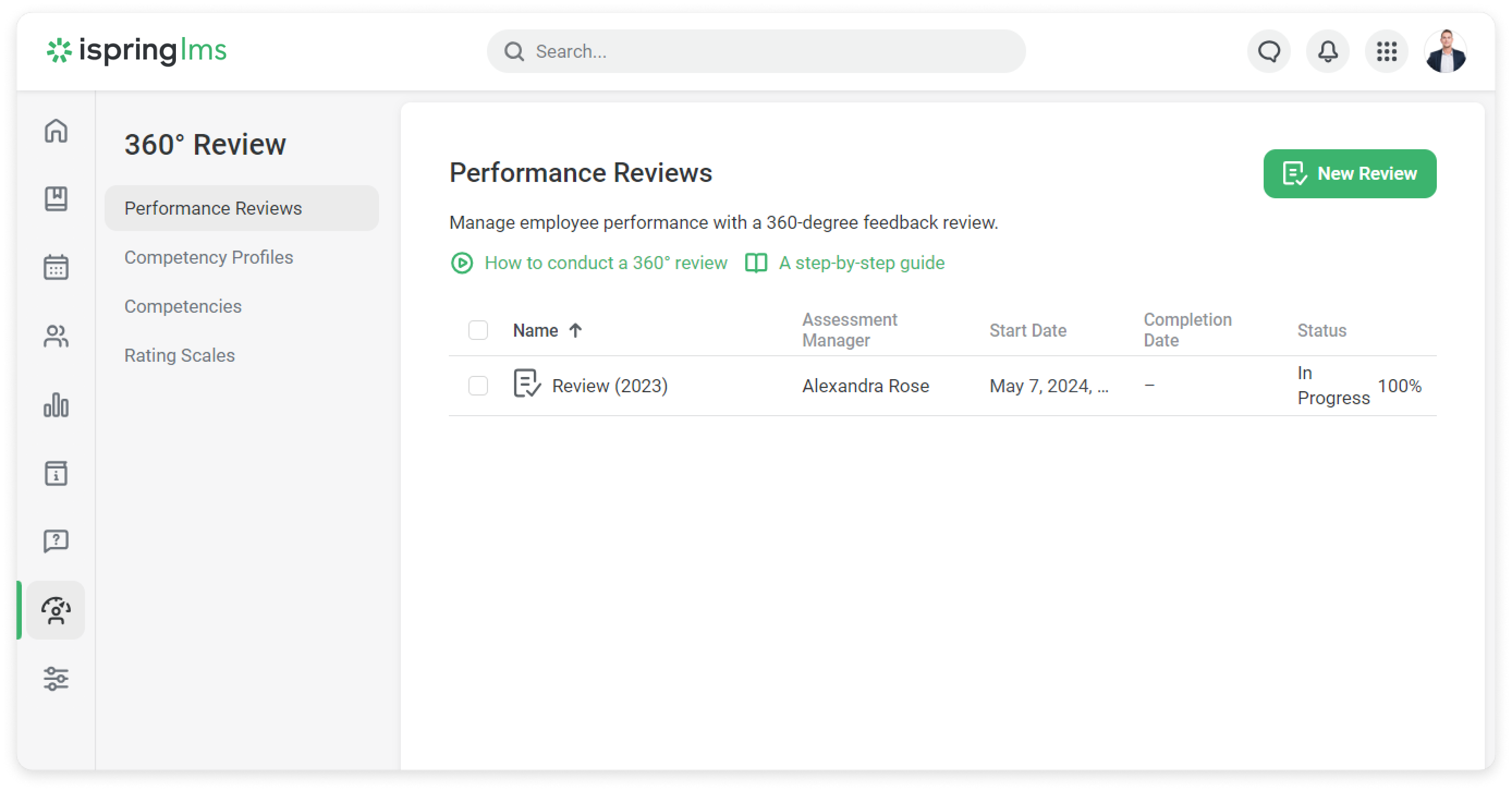The Account Owner, Account Administrators and users with a custom role enabled to manage competencies, profiles and performance reviews, have access to the 360° Review module.