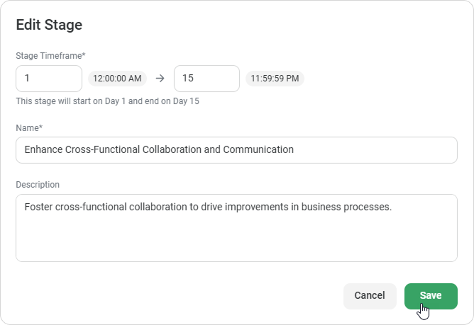 - Add tasks to the stages. To change the stage name and adjust its duration, click on ••• and then on Edit Stage.
