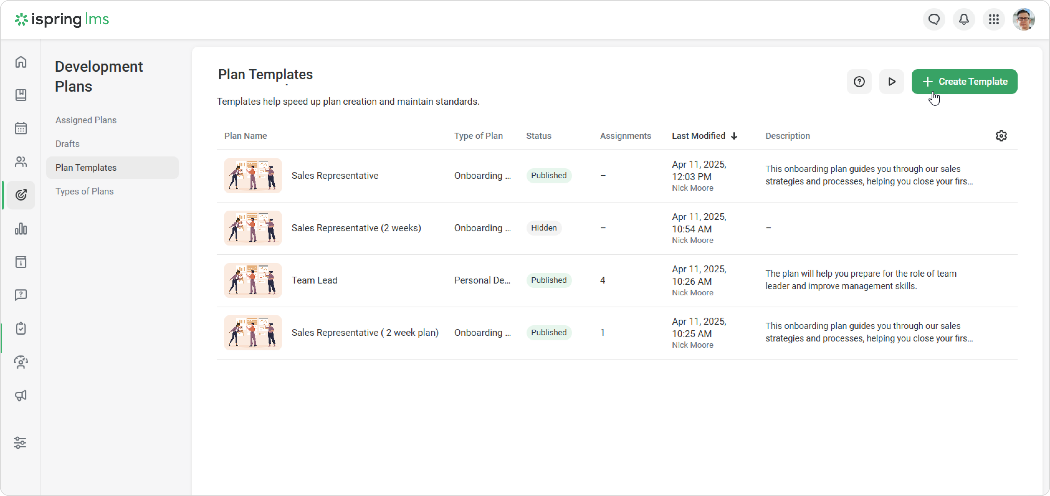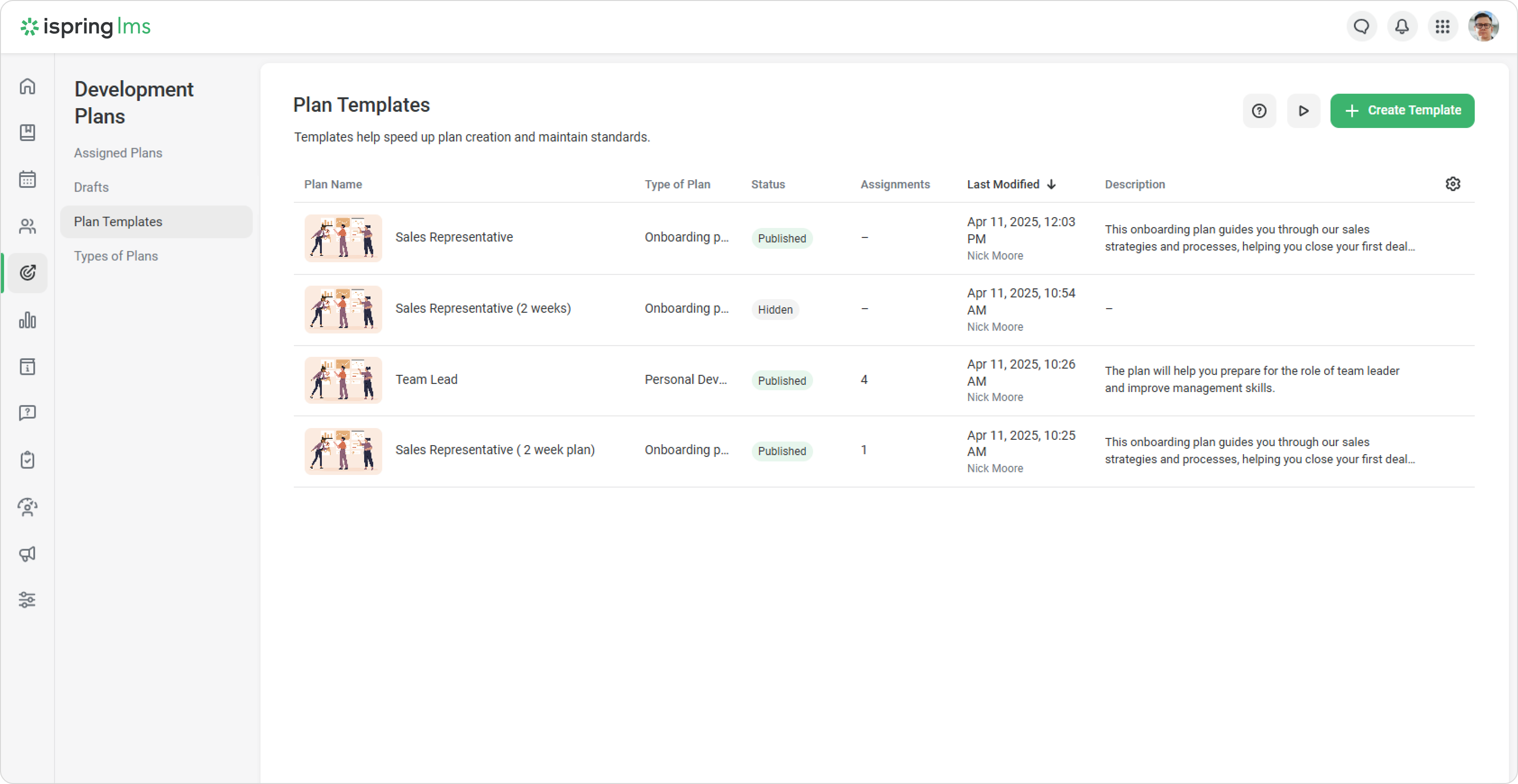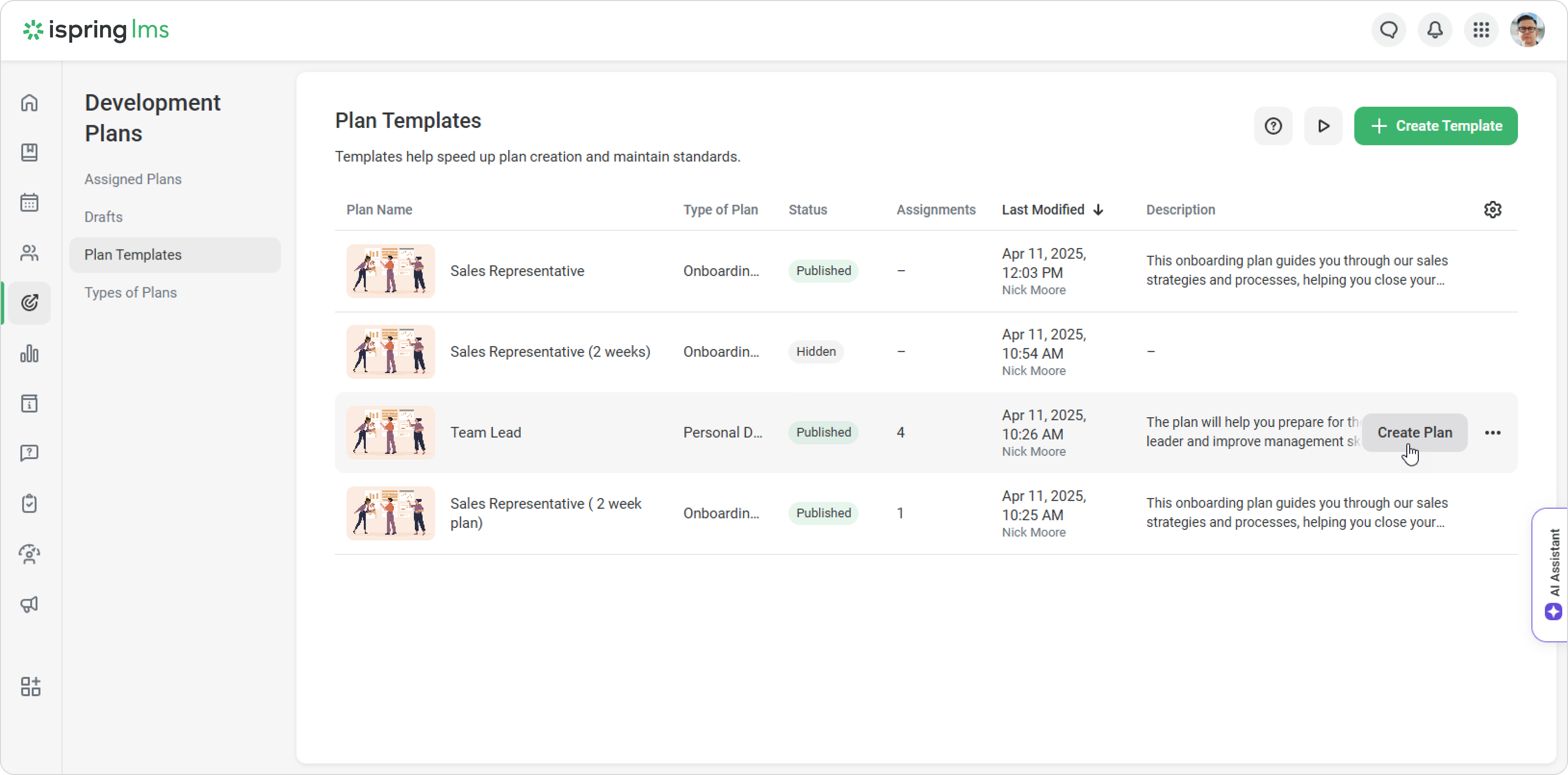 Plan templates save time for administrators and supervisors, allowing them to select and assign plans for different positions quickly.