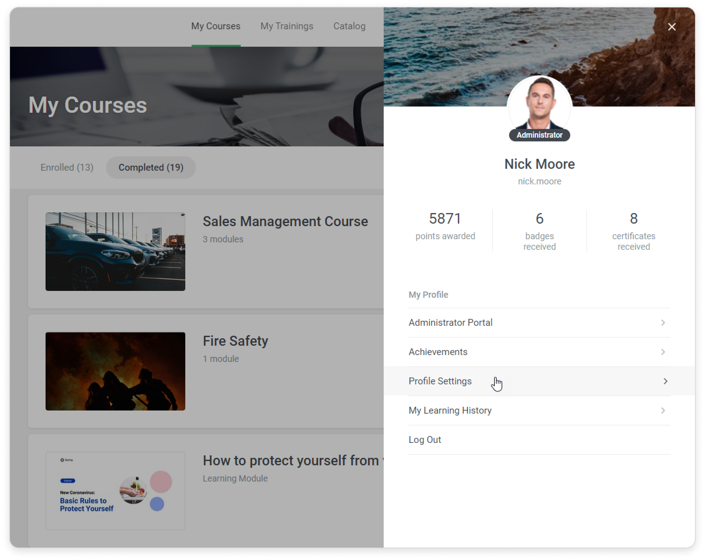Select your time zone to see dates in the user portal in your local time. The deadlines for passing courses, time in training and data in the dashboard will be recalculated.