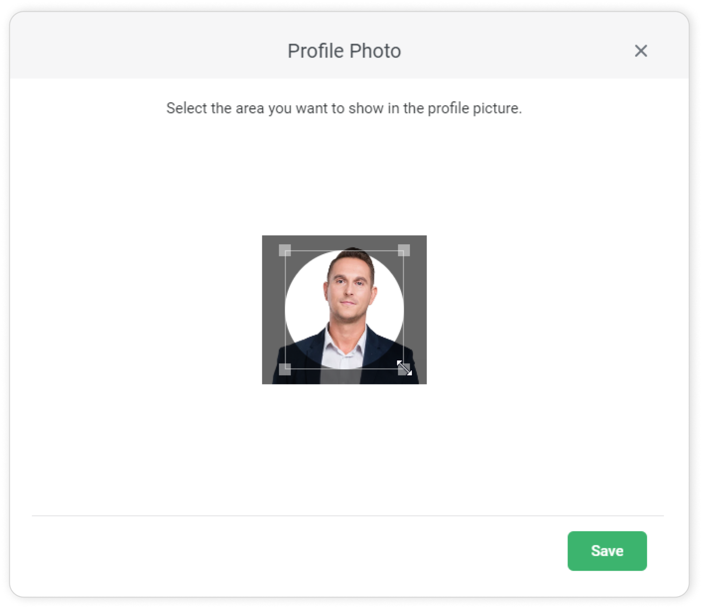 - Select the area of the photo for your avatar by dragging and resizing the square frame. Make sure the cropped image is larger than 120х120 px.
