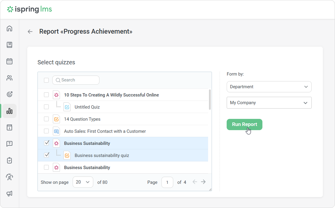 Select content items and a department/group you would like to run a report on. Then, clickRun Report.