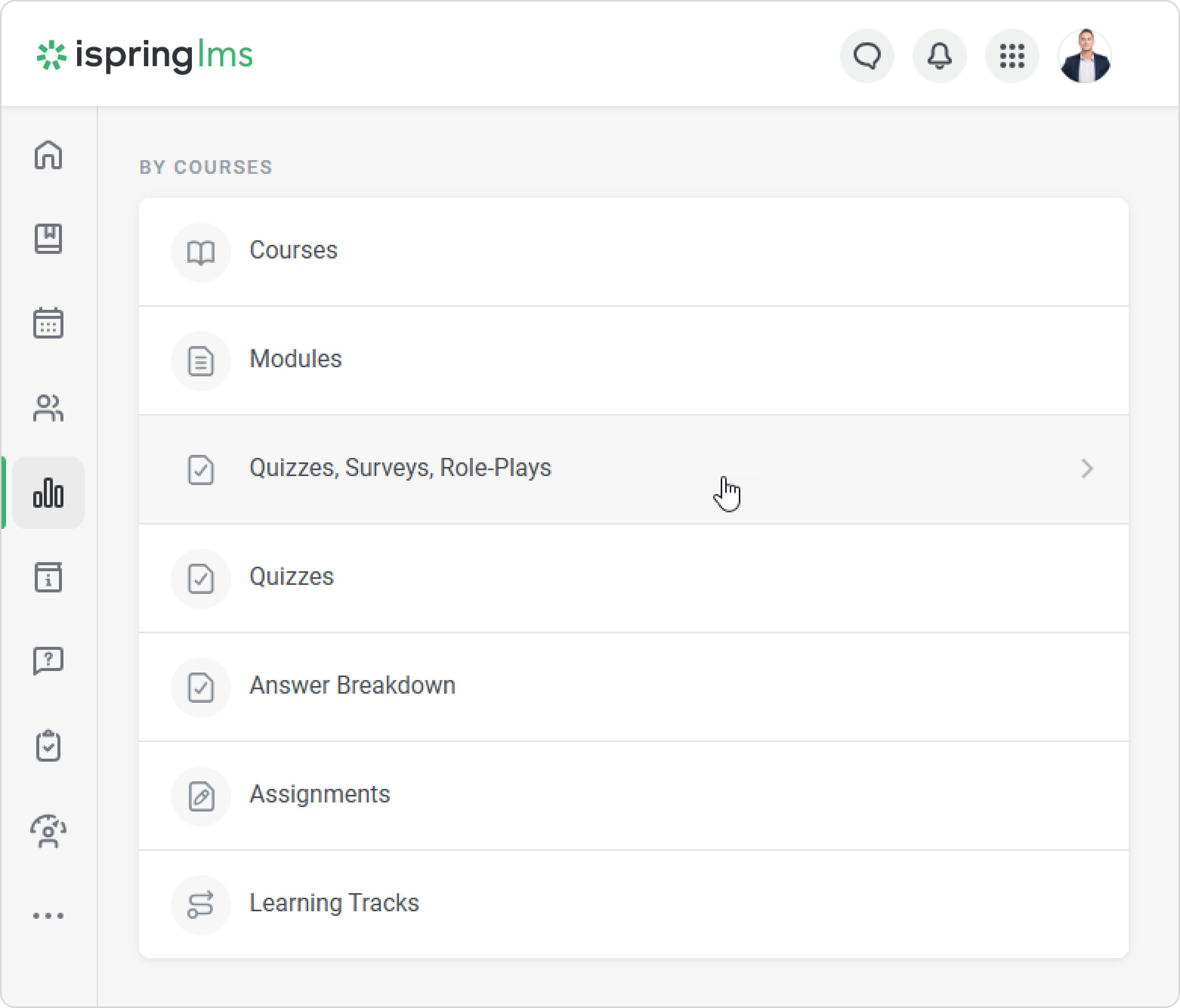- Go to the Reports section and scroll down to the By Courses section.