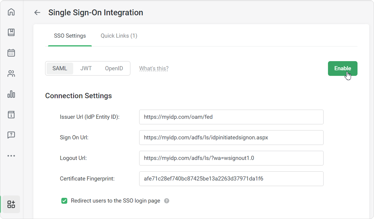If you get a 400 error and a message about the request being composed incorrectly ("Cannot retrieve metadata for IdP 'https://myidp.com/oam/fed' because it isn't a valid IdP for this SP") after you enabled SAML 2.0 in your iSpring LMS account, it means that the value set for the Issuer Url (IdP Entity ID) field is incorrect.