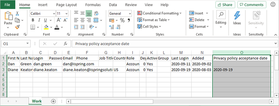 In the exported file, you will see the Privacy policy acceptance date column. It contains the date when a user accepted your Privacy Policy.