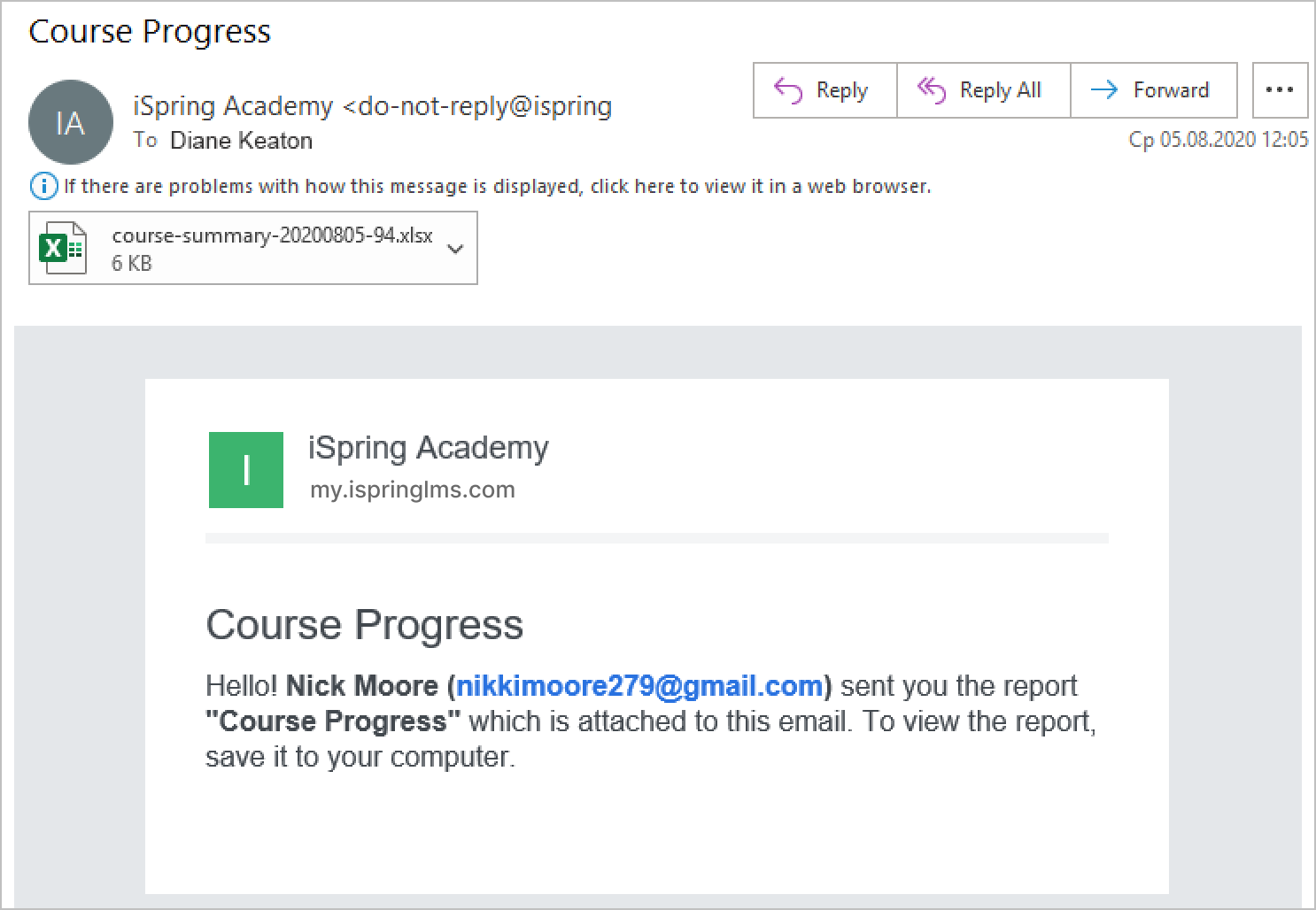 Send a report to your colleagues' or employees' emails to show learners' progress on a course or provide information on training attendance.