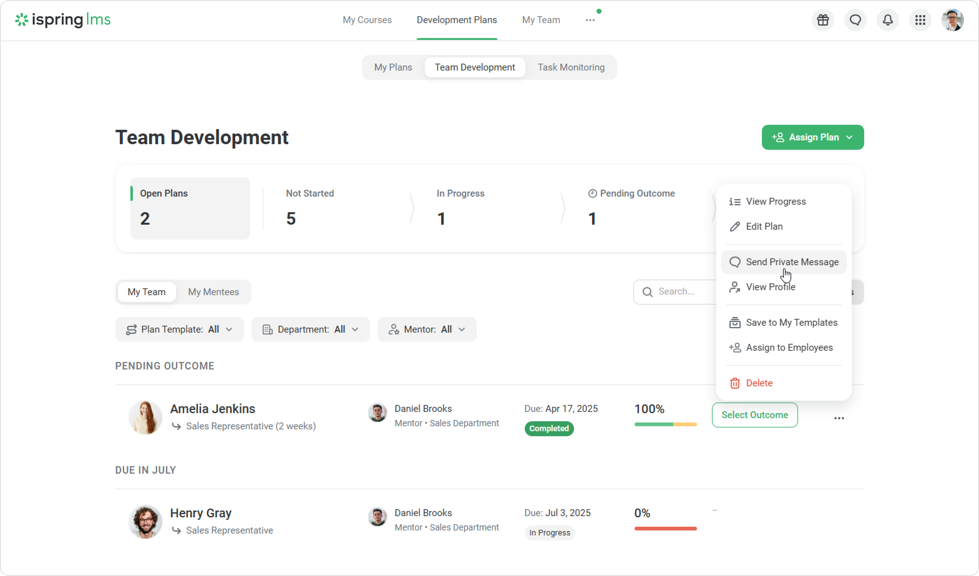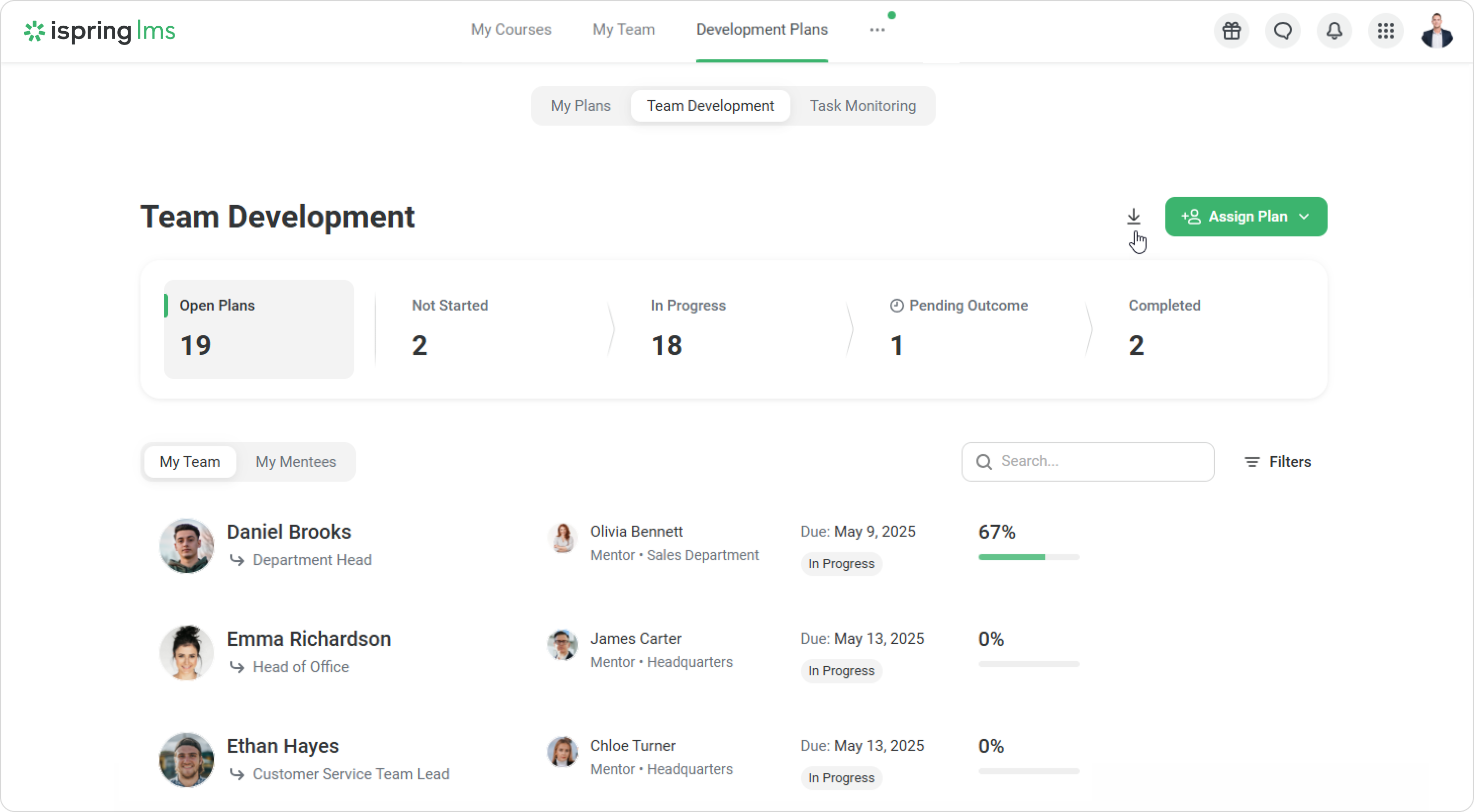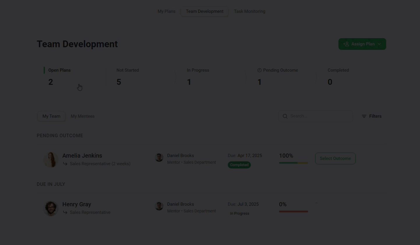 If a supervisor also acts as a mentor, they can easily switch between the My Team and My Mentees tabs to streamline workflows.