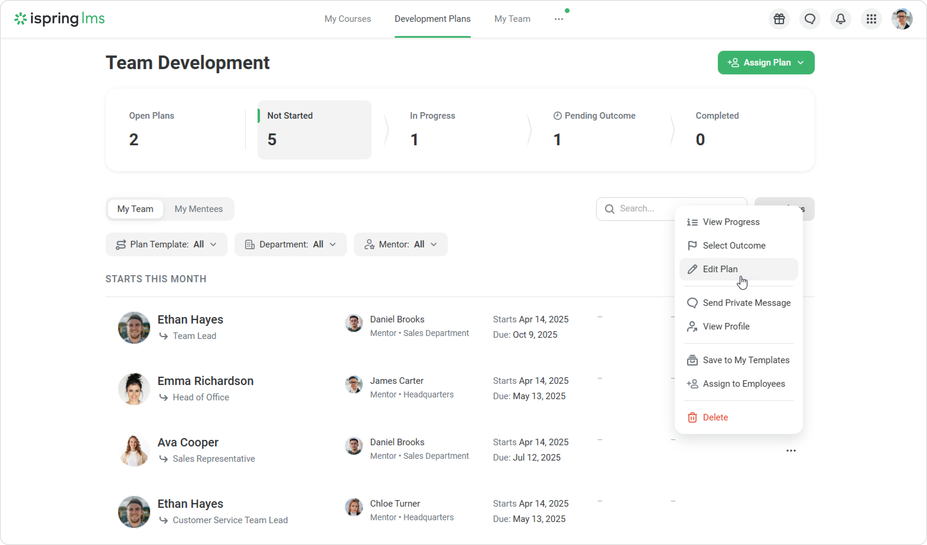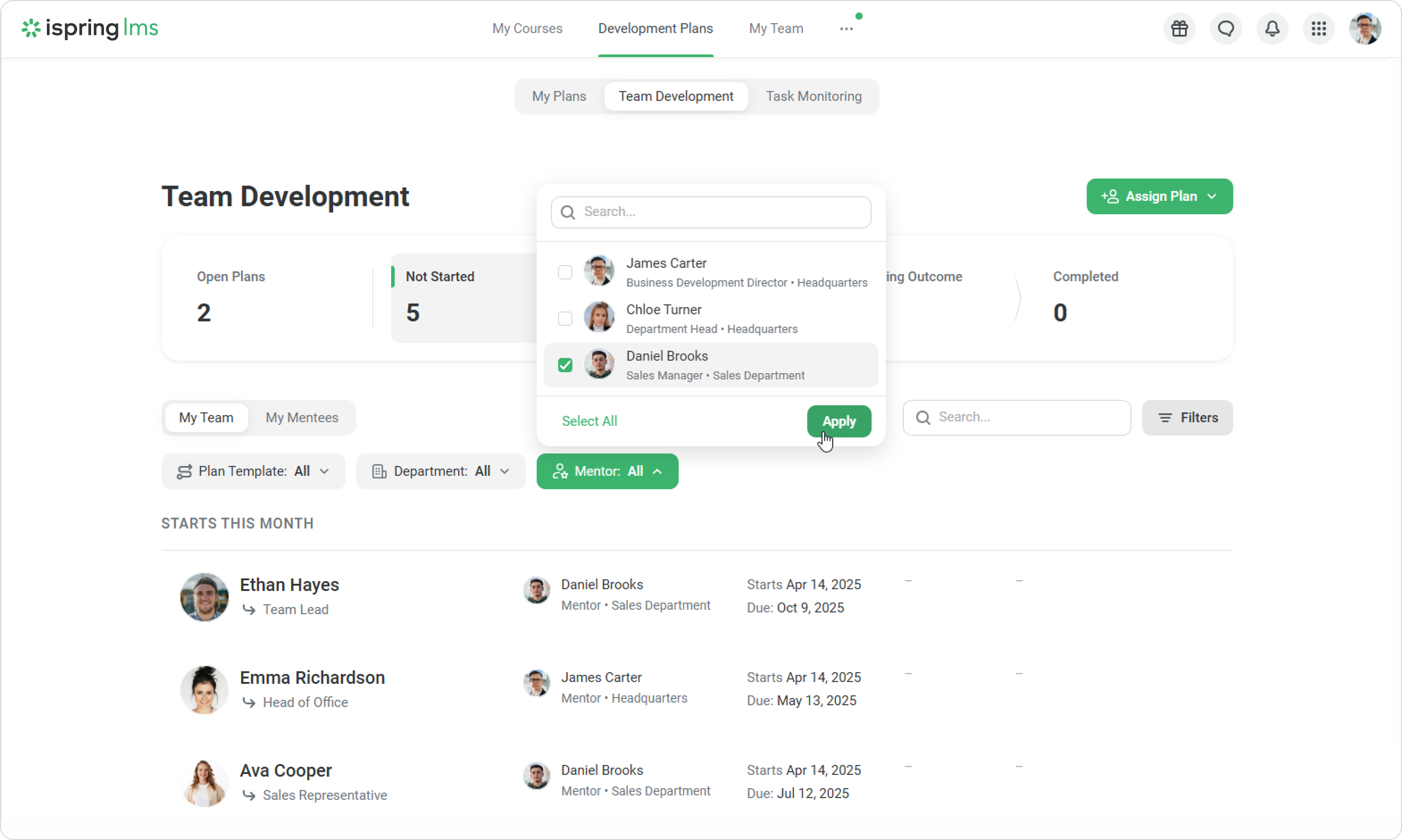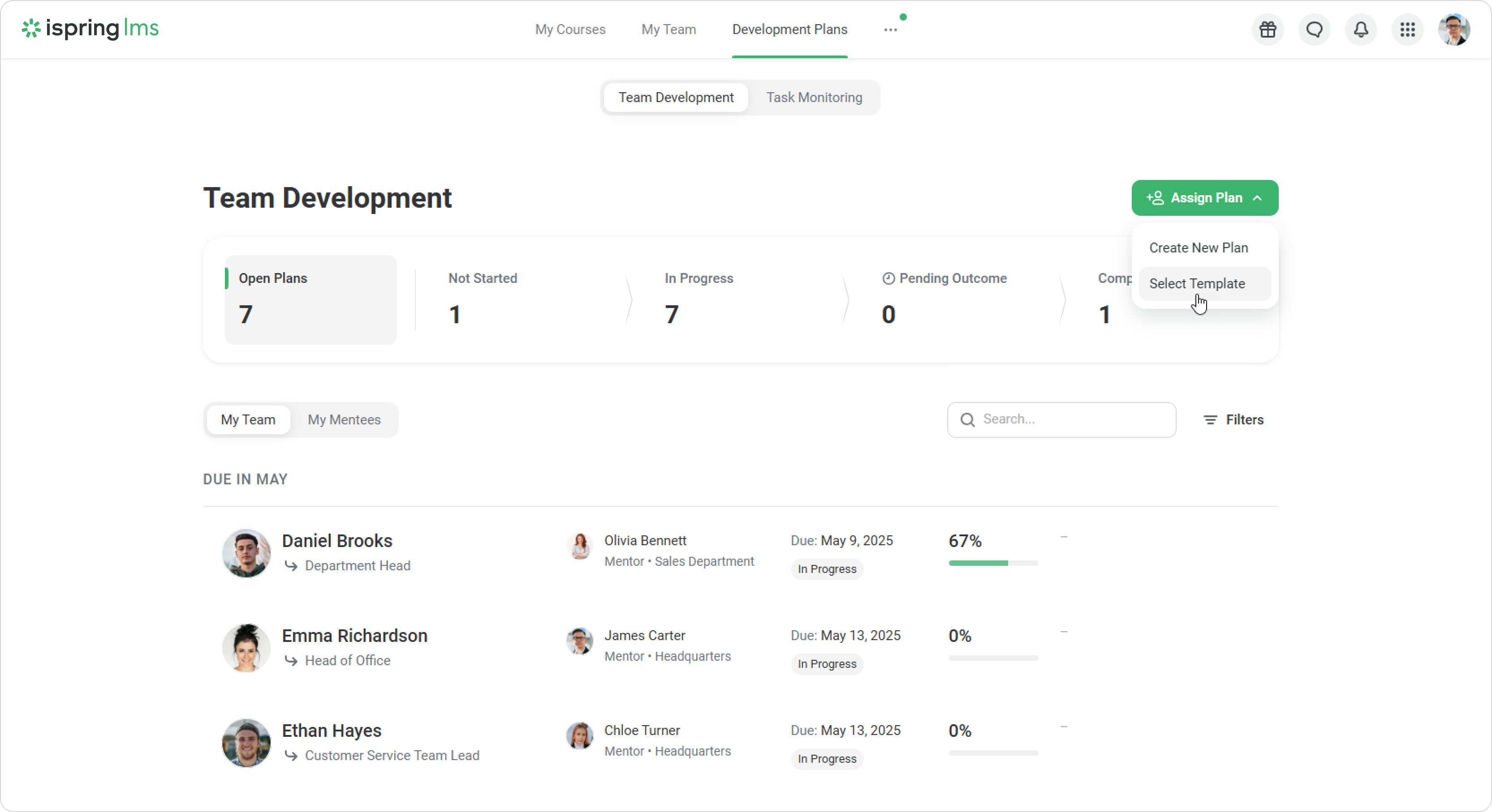 If a supervisor also acts as a mentor, they can easily switch between the My Team and My Mentees tabs to streamline workflows.