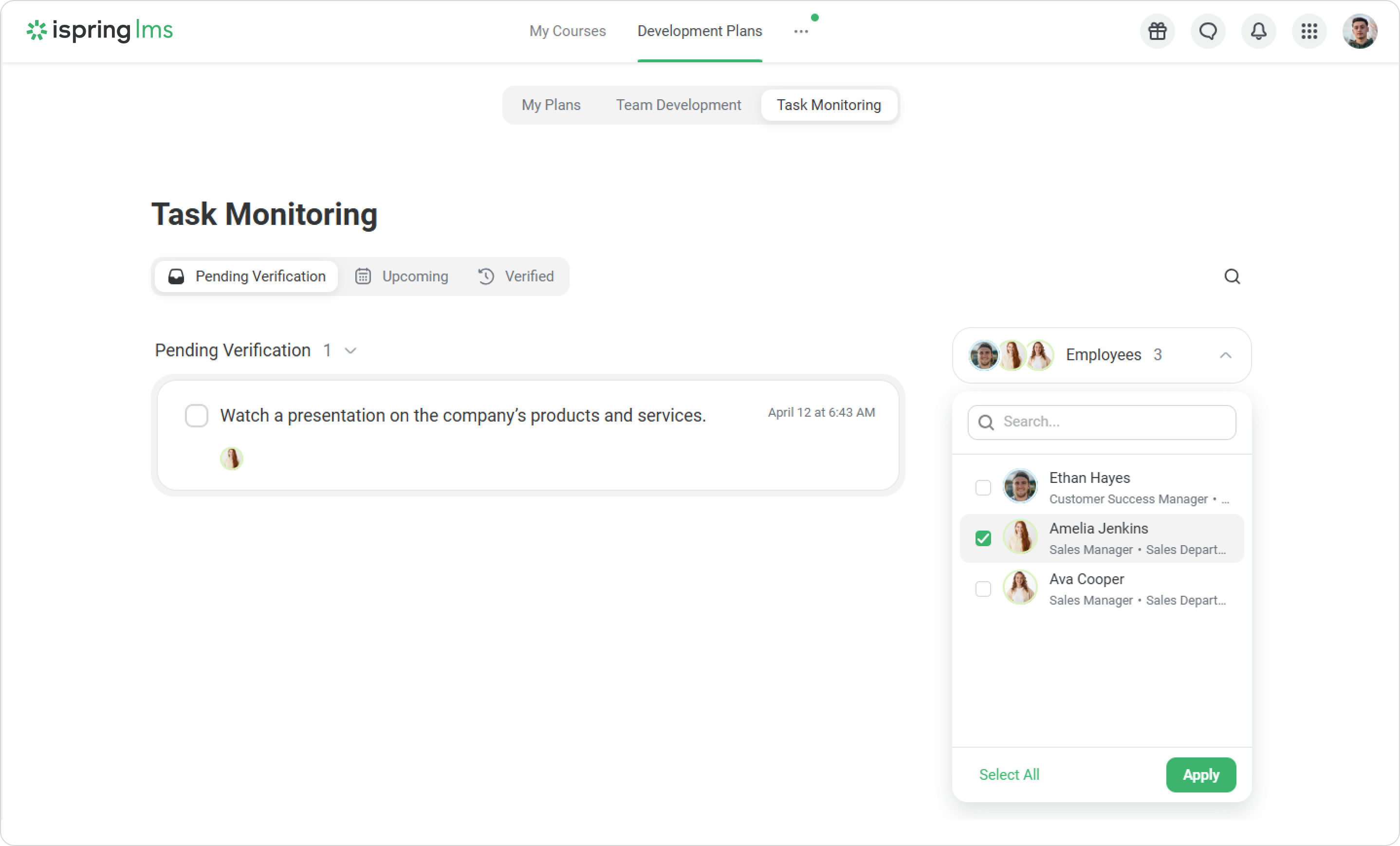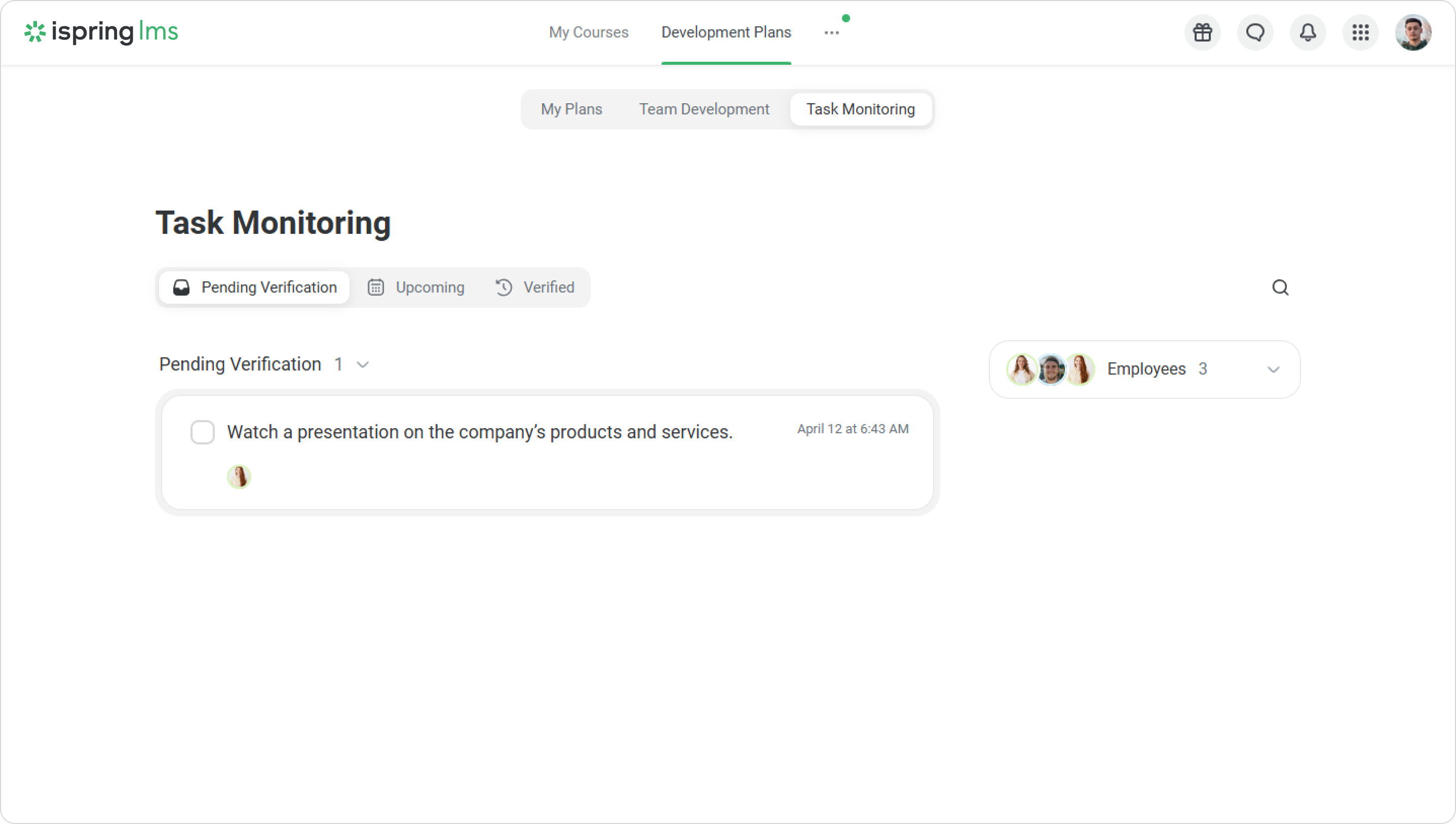 When a colleague submits a task for verification, you'll receive a notification.
