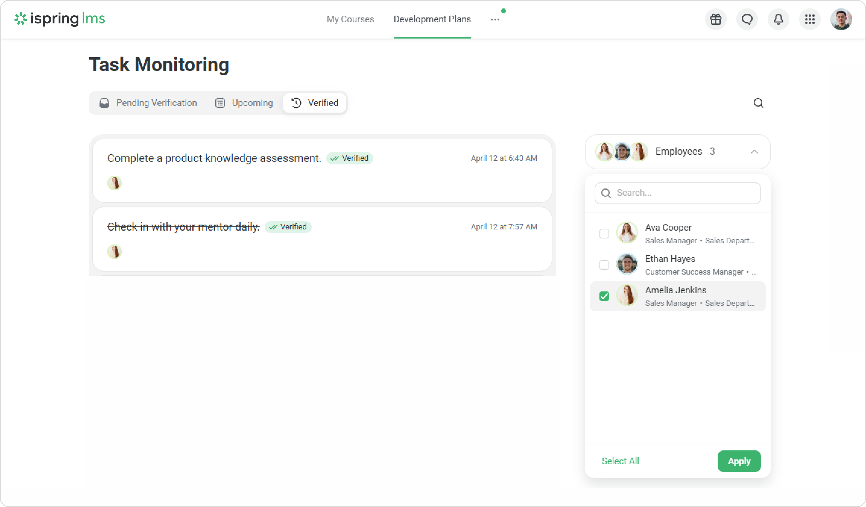 - Check the task. If there are any issues and it needs to be redone, click on Reopen. If the employee did well, click on Verify.