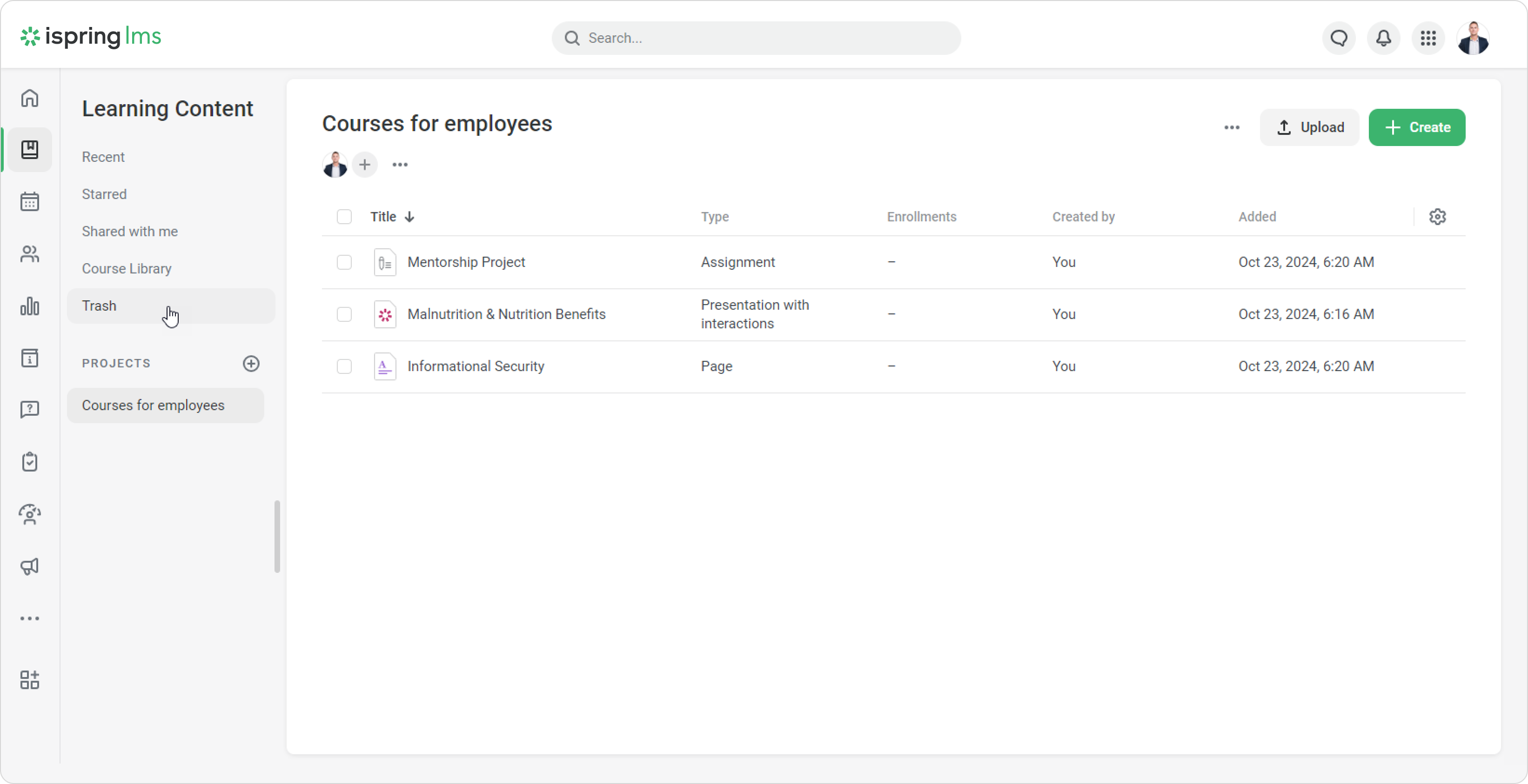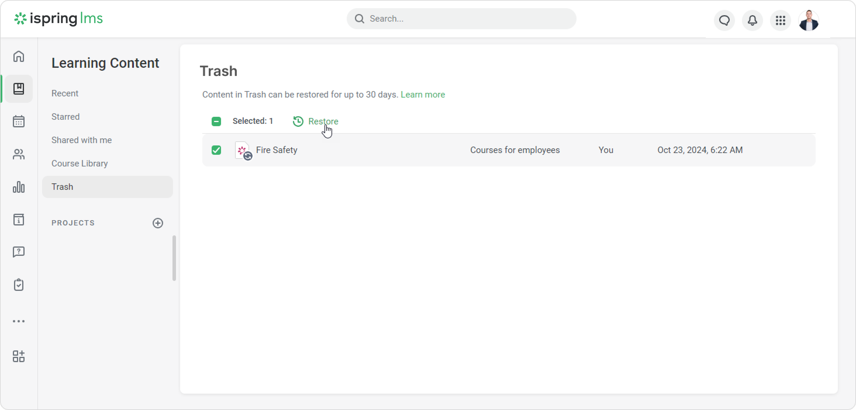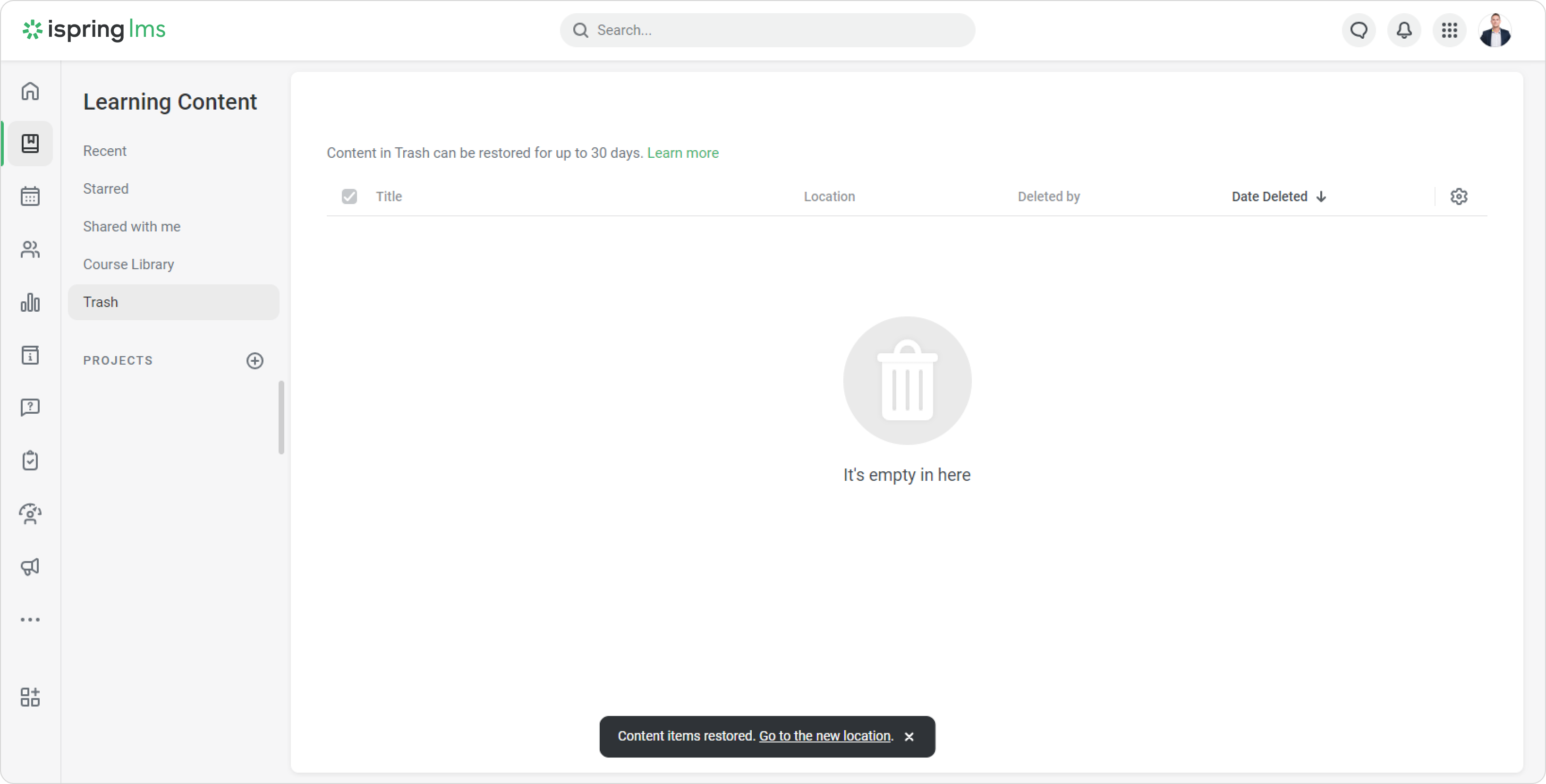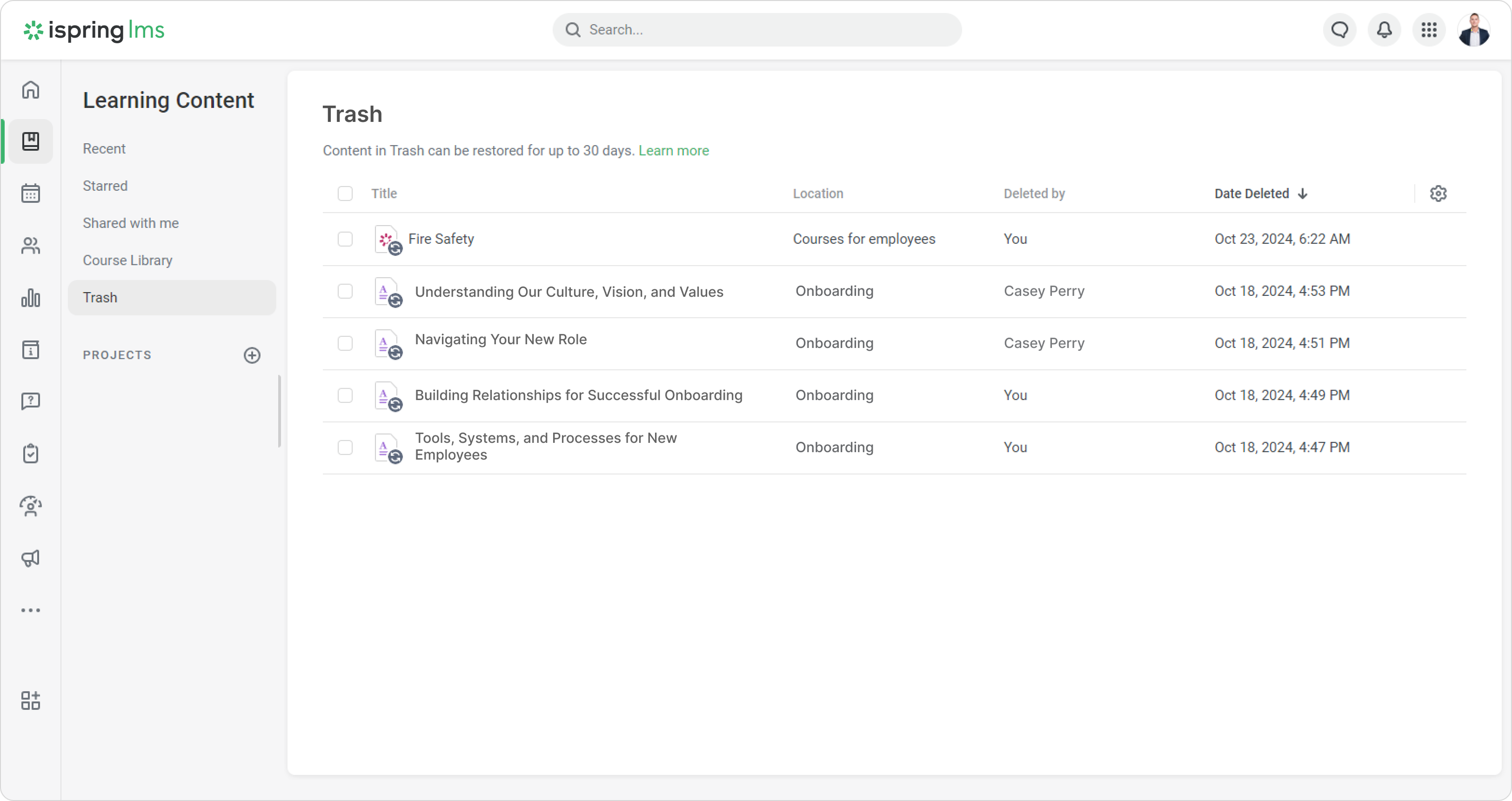 If someone deletes an entire project, only the Account Owner will see the content from the project in the Trash folder.