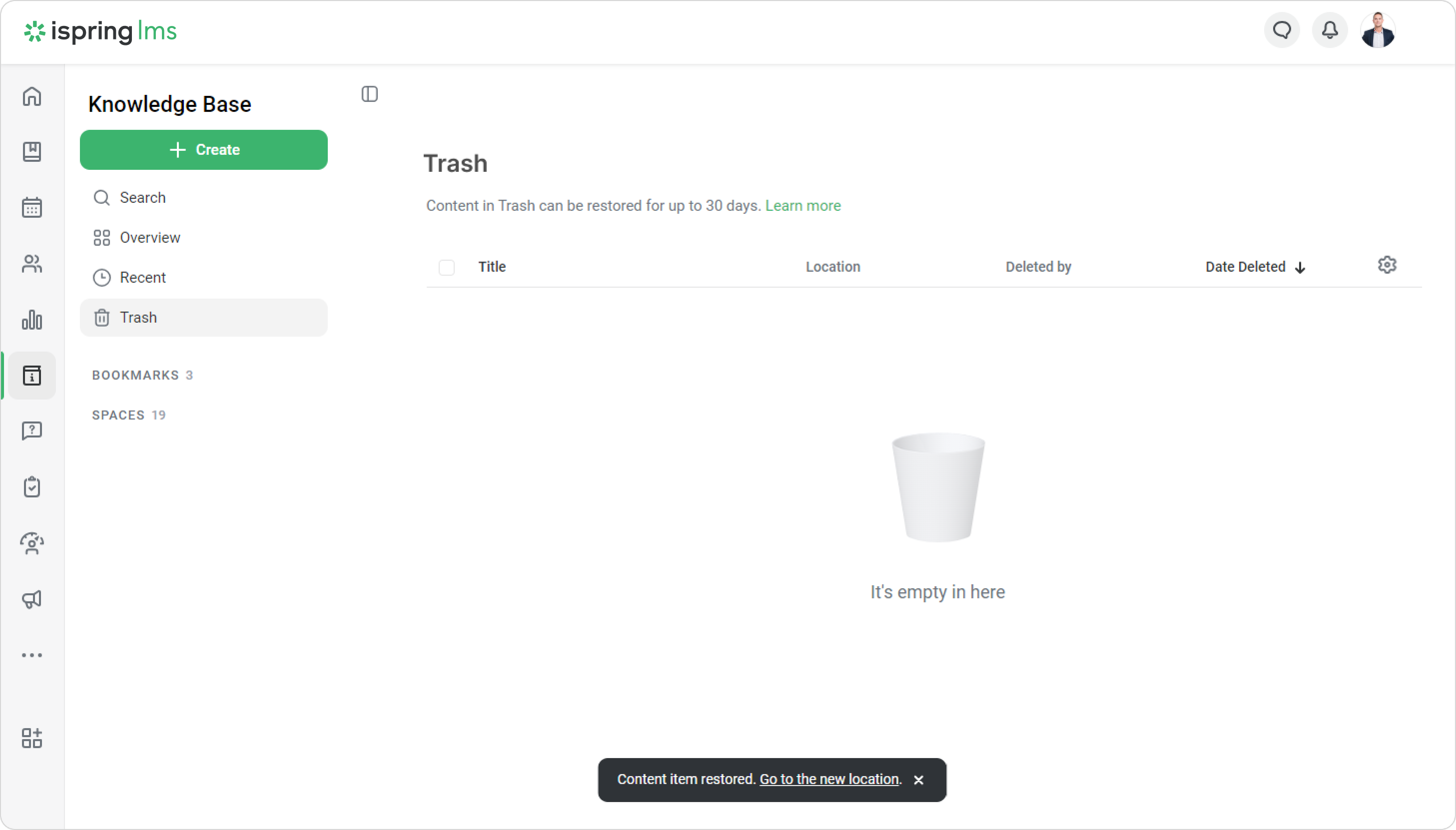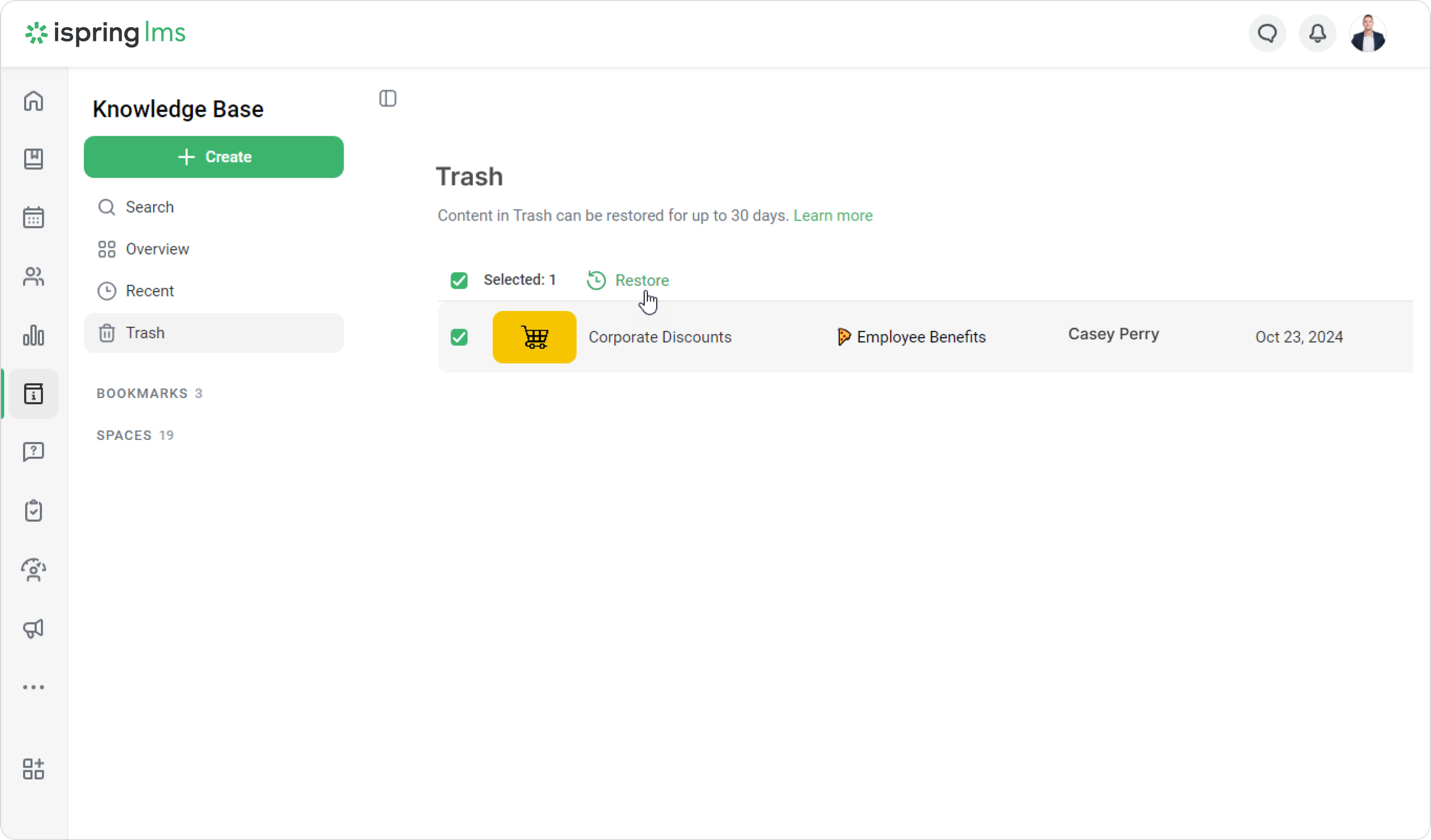 These are the users who can see the Trash folder and recover content in the Knowledge Base: