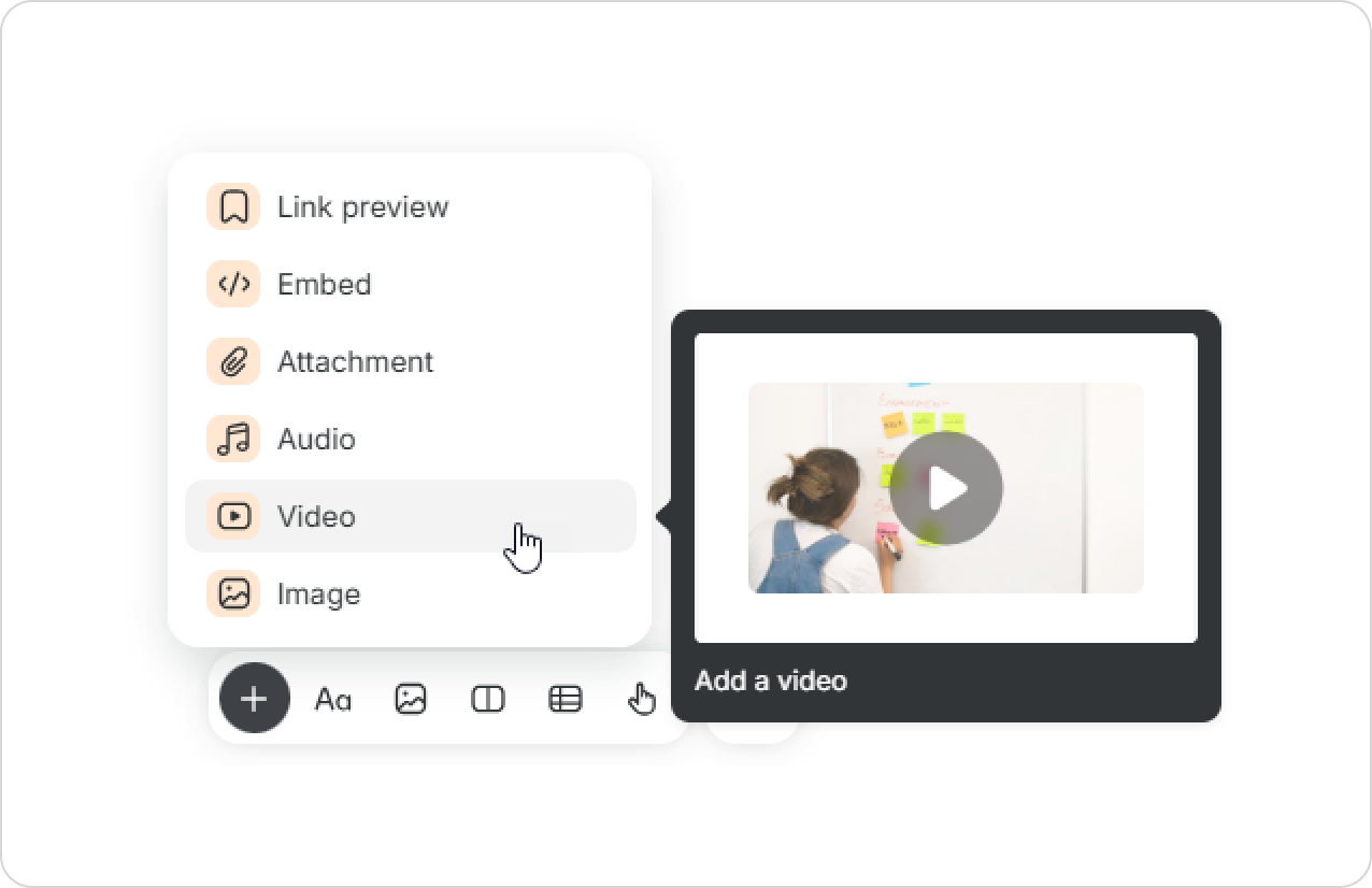 There are 3 ways to upload a video: drag and drop, select from a folder, and copy from another page.