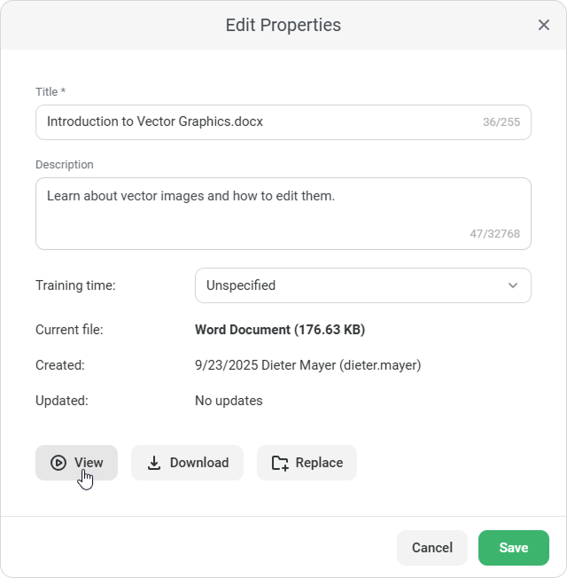 - Word, Excel, and PowerPoint files that you uploaded to the platform before August 7, 2024, need to be downloaded first and then opened.