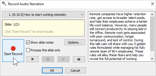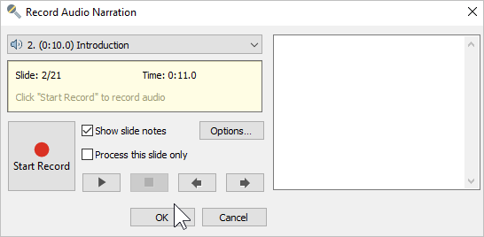 | 4. Process this slide only | Enable and disable audio recording only for the current slide. |