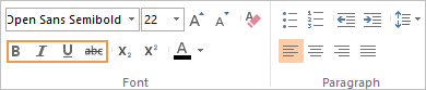 To change the font size, choose a value from the drop-down list or type any size you want in the font size field. Also, you can increase and decrease the font size by clicking uppercase and lowercase A letters next to the font size drop-down list.