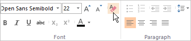The Eraser tool helps to reset the initial color of the text and generally cancels all applied formatting.