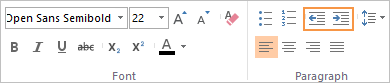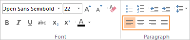 Place the cursor inside the paragraph and click on one of the alignment buttons. You can align the text left, right, or center, or match the width.