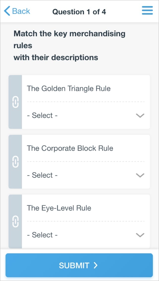 Users can skip questions and return to them later on.