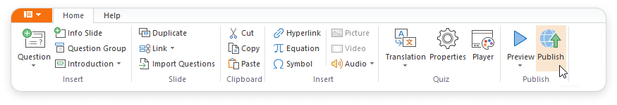 - Click Publish on the iSpring QuizMaker toolbar.