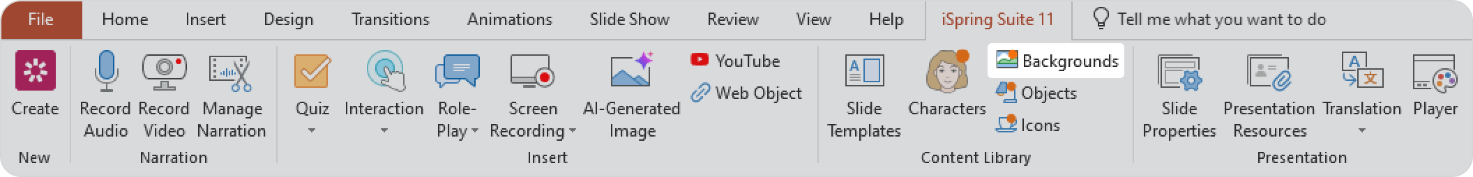 - First, click the Backgrounds button on the toolbar.