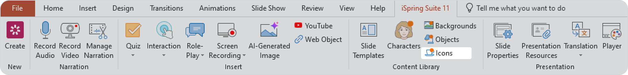 You can edit icons, for example, recolor them to match your branding. To do this, click on the icon and select Format > Shape Fill.