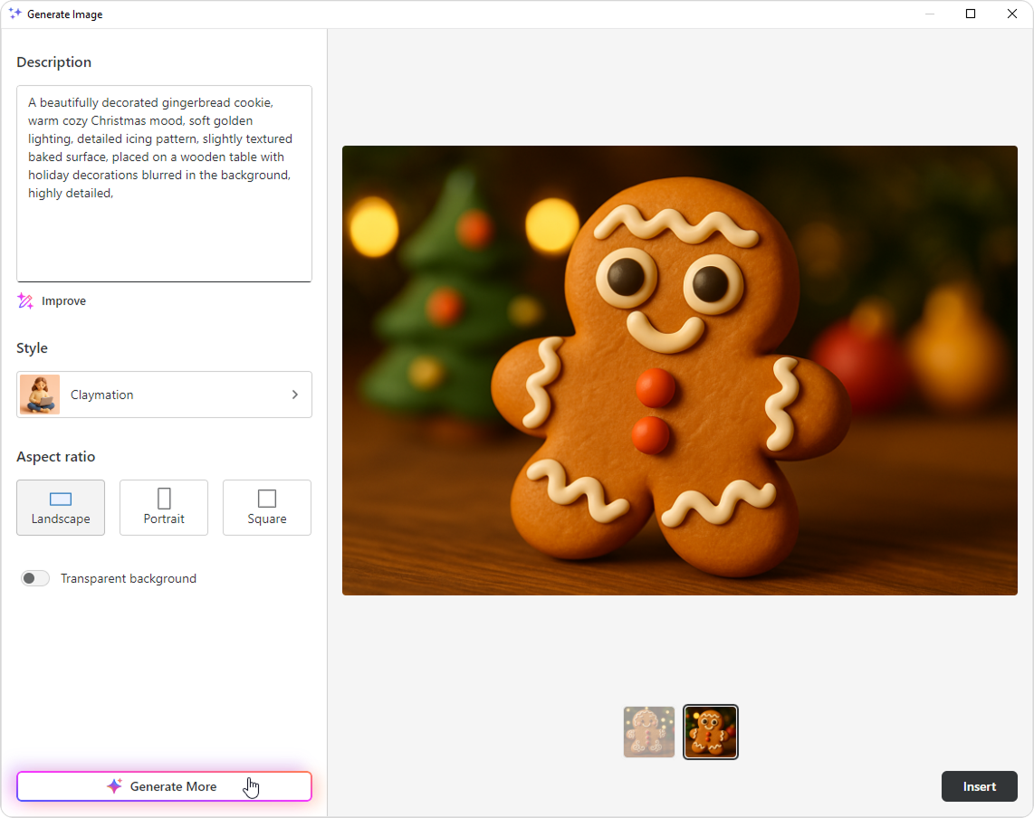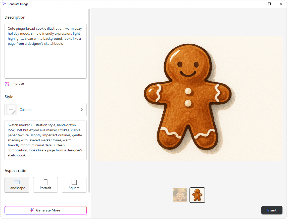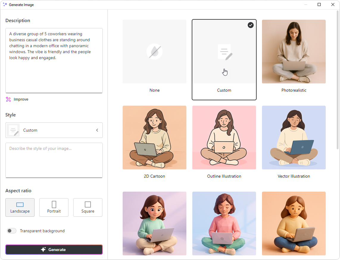 Click Generate, wait a few moments, and review the result. If the image doesn’t quite match what you need, click Generate more to try another version.
