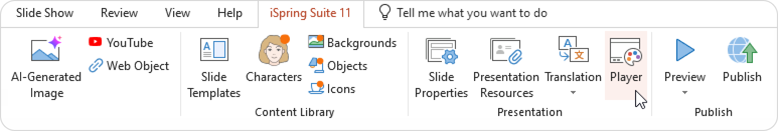 - Go to the Player settings on the iSpring Suite toolbar.