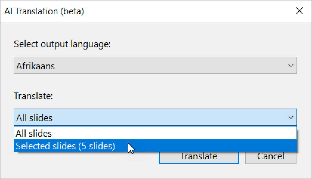 Now choose whether to translate all slides or just the ones you selected, then click Translate.