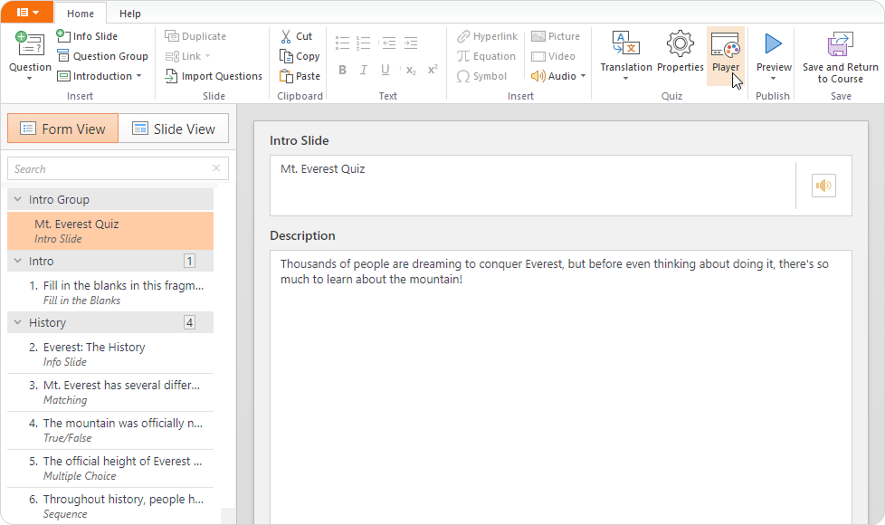Add an interactive quiz or a survey created with iSpring QuizMaker into your course.