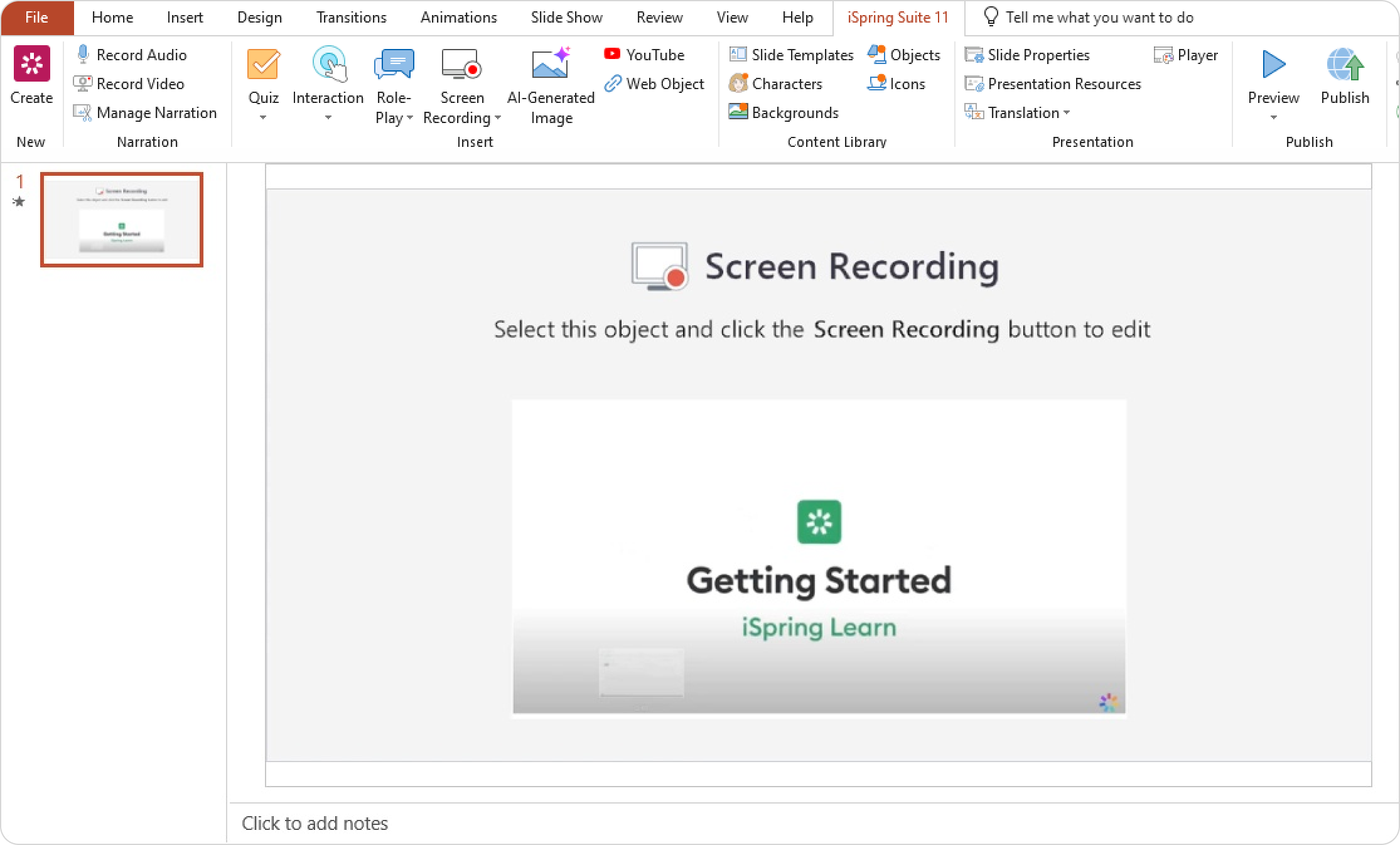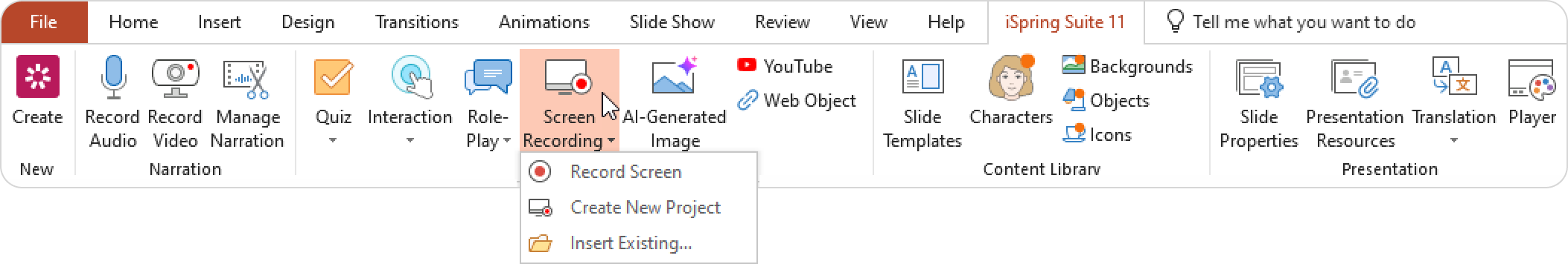 - Click Screen Recording on the toolbar. Record a new video, create a new video project, or open a video project that has been earlier created with iSpring Cam Pro.