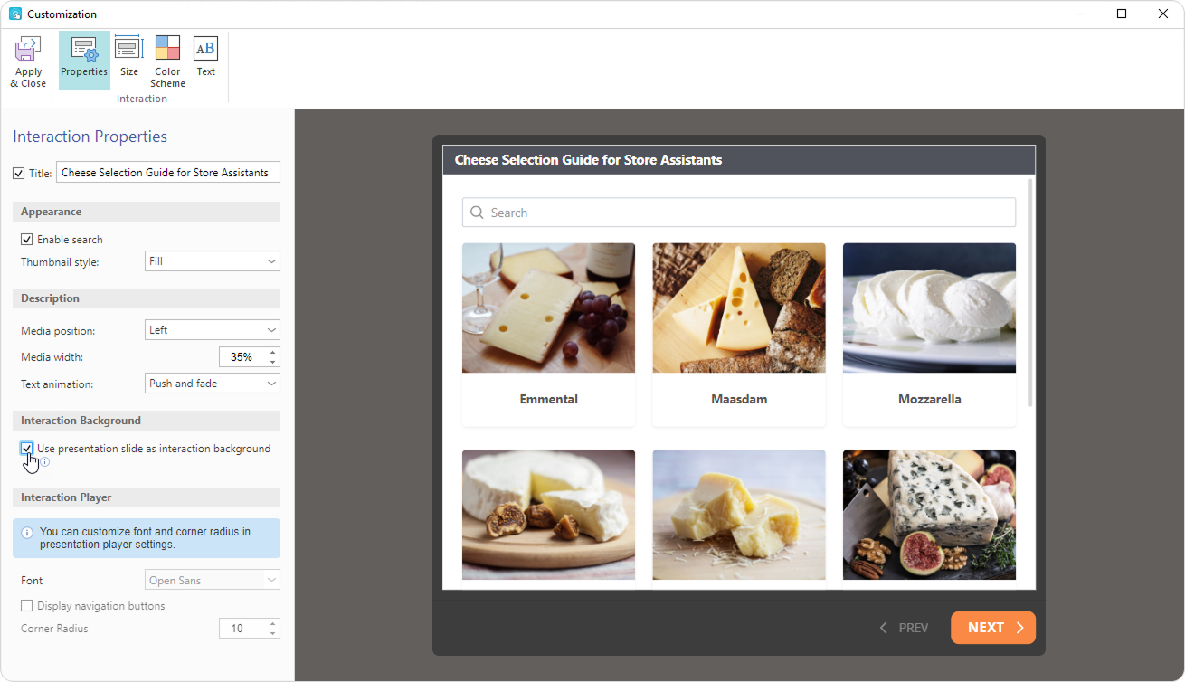 The background of the current slide will be automatically applied and displayed in the interaction.