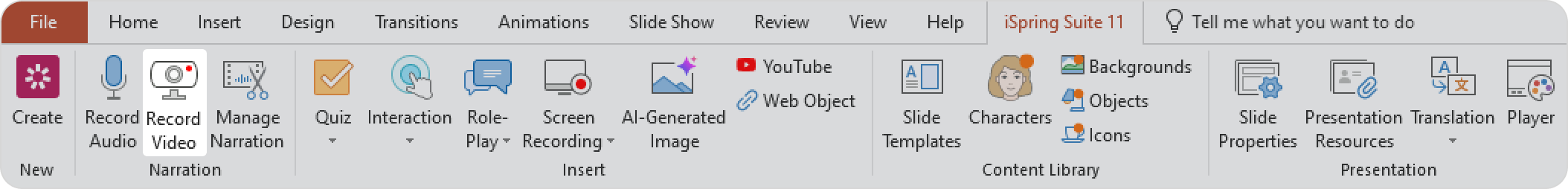 | 2. Start Record / Next Animation/ Next Slide/ Stop | Manage the recording process: start recording, advance to the next animation, advance to the next slide, stop recording. |